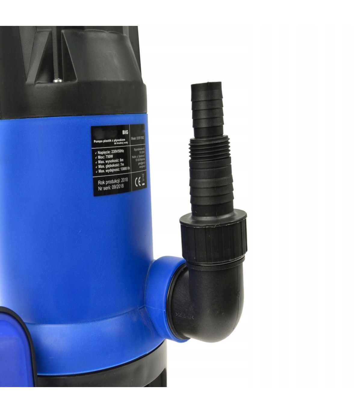POMPA PLATISKOWA DO WODY CZYSTEJ/BRUDNEJ 750W 13000l/h WYŁĄCZNIK PŁYWAKOWY