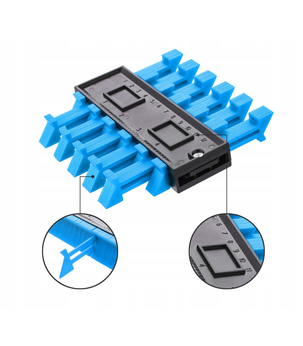 Narzędzie znacząco ułatwia precyzyjne prace wykończeniowe, eliminując zgadywanie i poprawki. Dzięki systemowi łączenia możliwe jest poszerzenie zakresu pomiaru poprzez dołączenie kolejnych szablonów.
