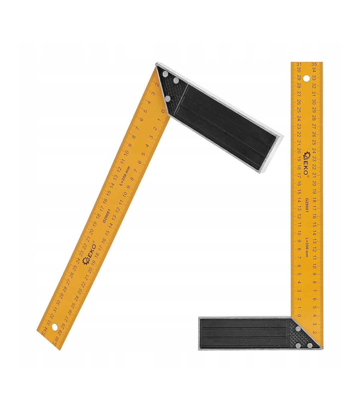 Kątownik stolarski/budowlany 350mm marki GEKO to niezastąpione narzędzie w warsztacie majsterkowicza, stolarza czy budowlańca. Umożliwia szybkie i precyzyjne wyznaczanie kątów prostych oraz linii cięcia, dzięki czemu świetnie sprawdza się podczas cięcia desek, paneli, płyt gipsowych, listew czy elementów konstrukcyjnych. Idealny do prac stolarskich, budowlanych, remontowych oraz wszędzie tam, gdzie liczy się dokładność i powtarzalność wymiarów.
