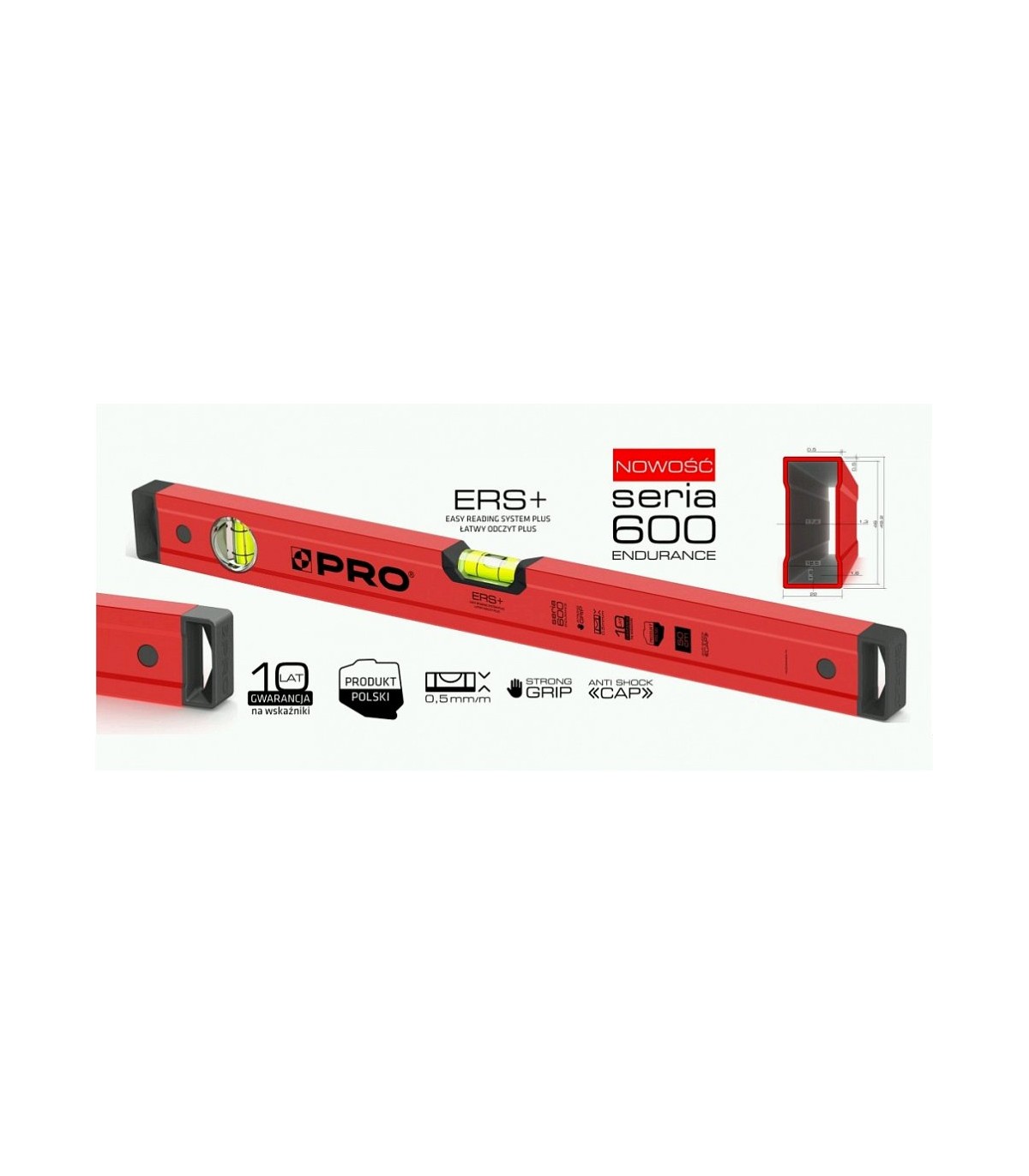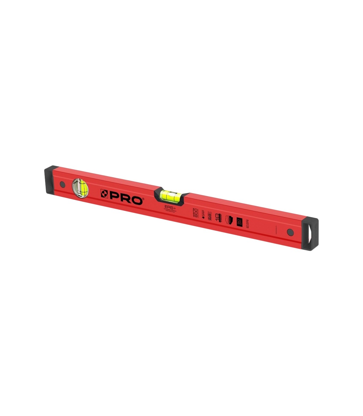 Poziomica z serii PRO 600 wyposażona jest w 2 libelle wykonane ze szkła akrylowego, dzięki czemu jest ona w znacznym stopniu odporna na uszkodzenia mechaniczne.
