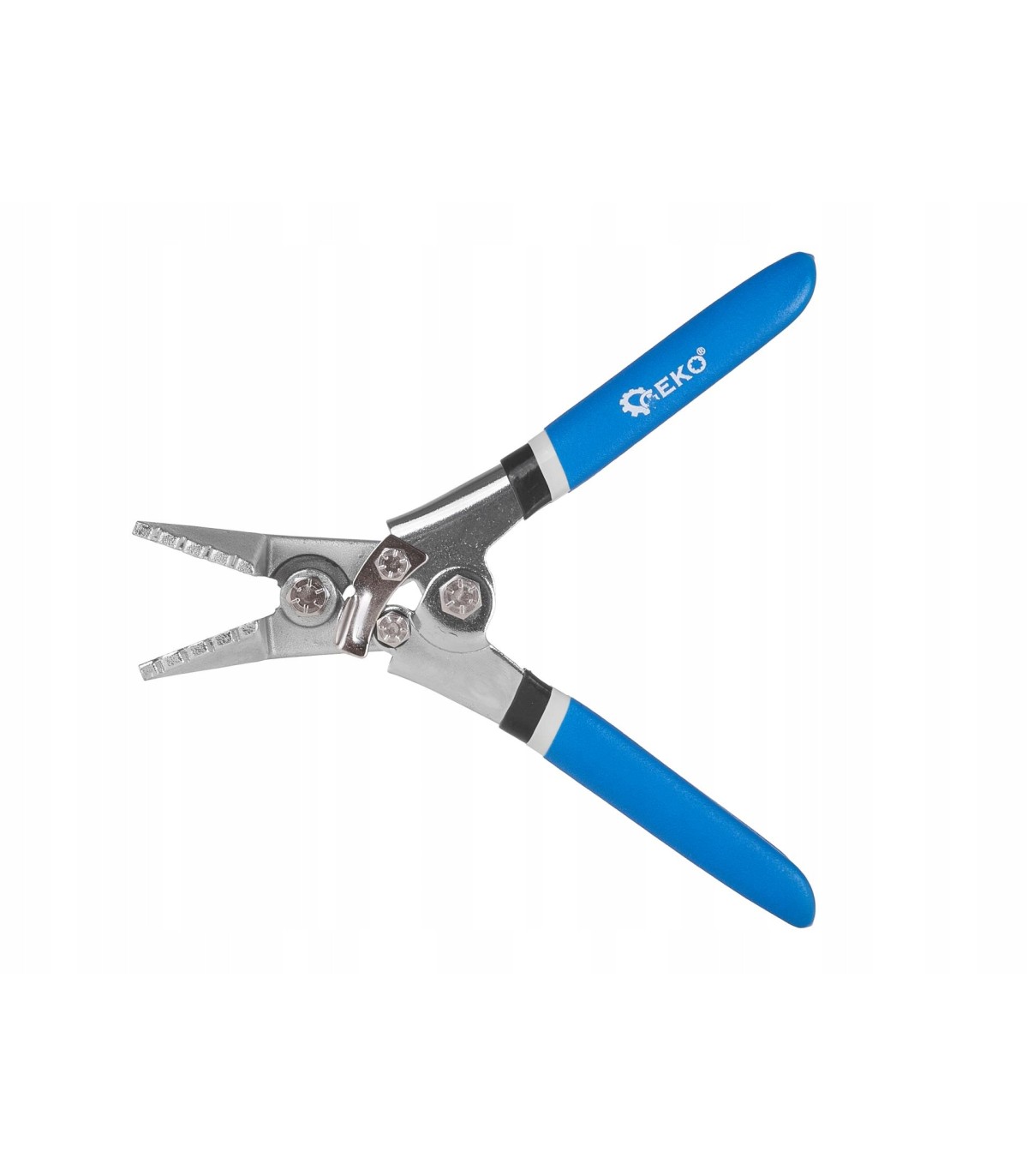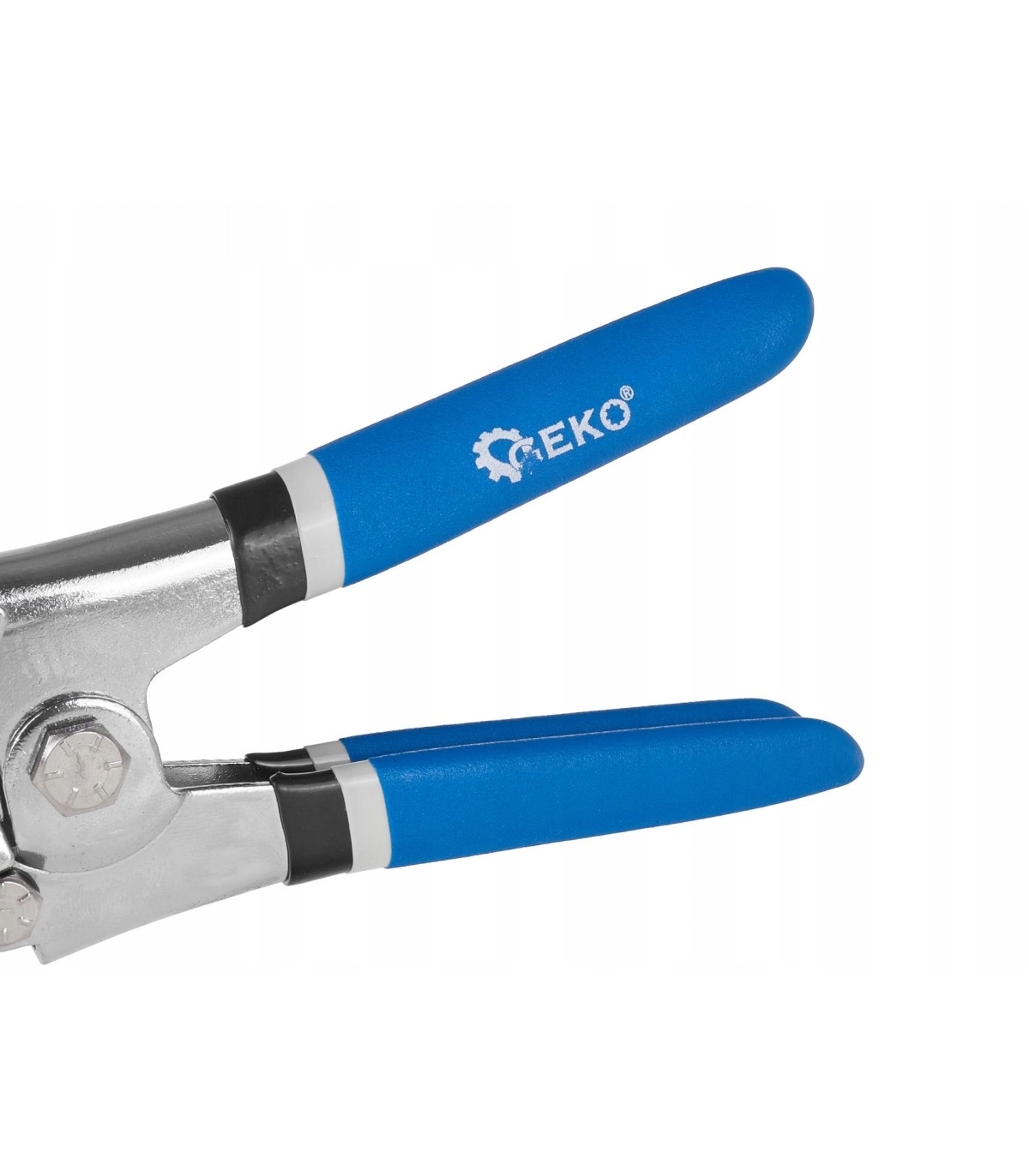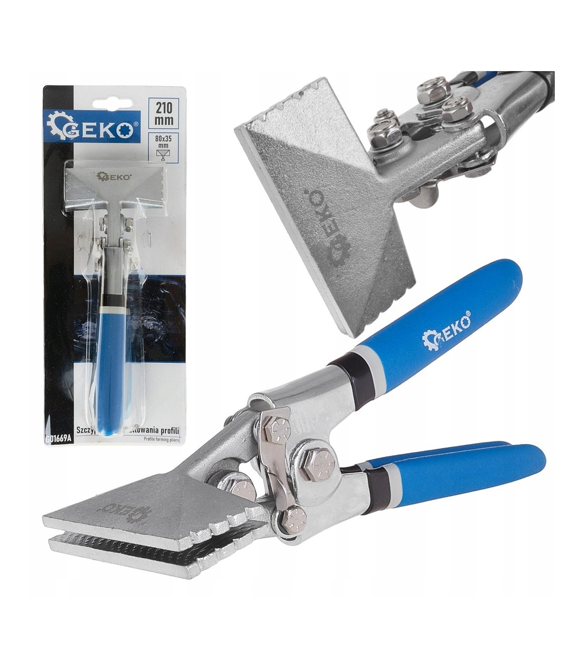 Szczypce do kształtowania profili Geko to solidne i niezawodne narzędzie, zaprojektowane z myślą o profesjonalistach oraz majsterkowiczach zajmujących się obróbką blachy. Dzięki specjalnie zaprojektowanym szczękom o wymiarach 80x35 mm, wyposażonym w antypoślizgowe nacięcia, narzędzie zapewnia pewny chwyt i precyzyjne formowanie blachy. Ergonomiczne uchwyty z powłoką antypoślizgową gwarantują komfort pracy, nawet podczas długotrwałego użytkowania, czyniąc szczypce idealnym wyborem do kształtowania profili metalowych, gięcia krawędzi oraz wykańczania elementów blaszanych w branży dekarskiej, wentylacyjnej i budowlanej.