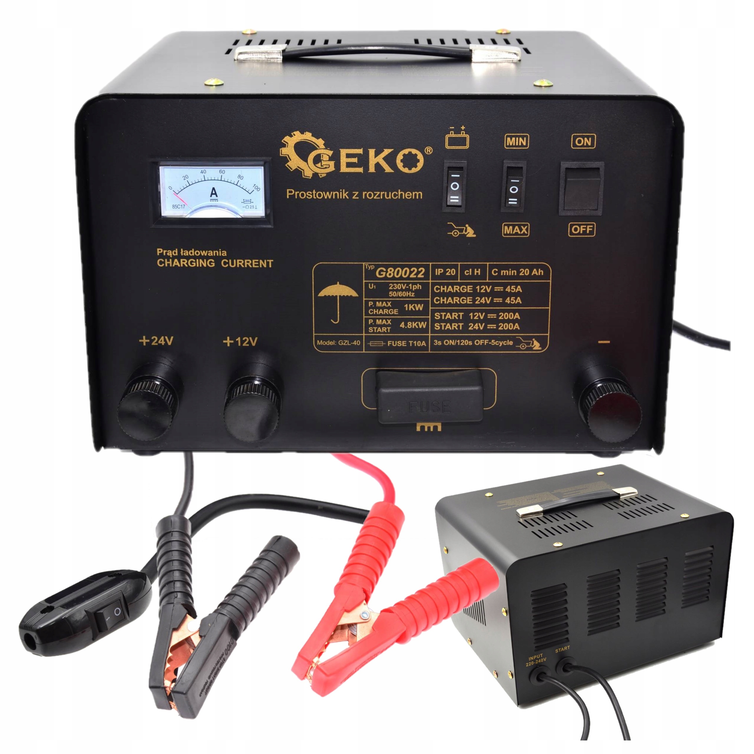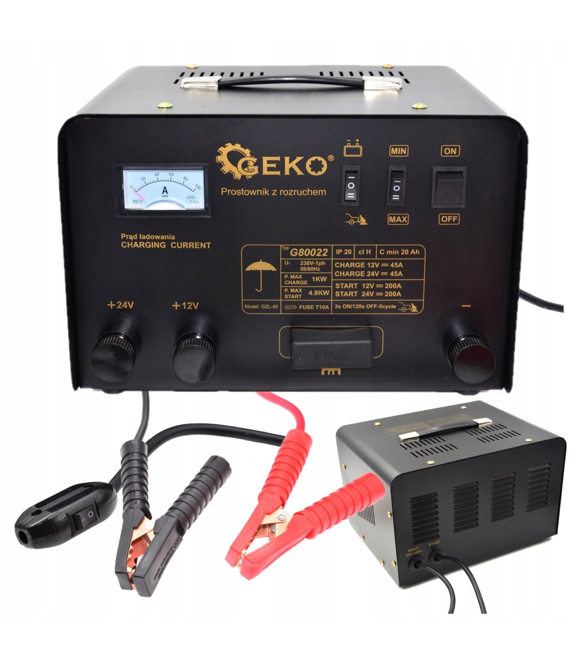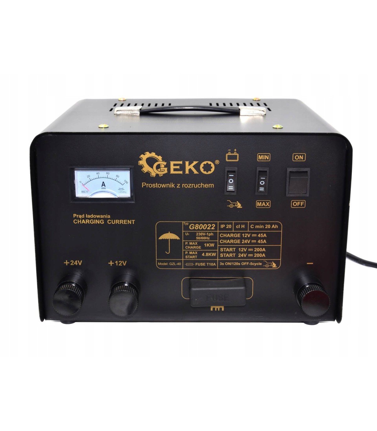 ⭐ Zespół prostowniczy z rozruchem 250A i funkcją szybkiego ładowania to urządzenie do ładowania akumulatorów o napięciu 12 V, 24 V i pojemności od 45 Ah do 500 Ah.
