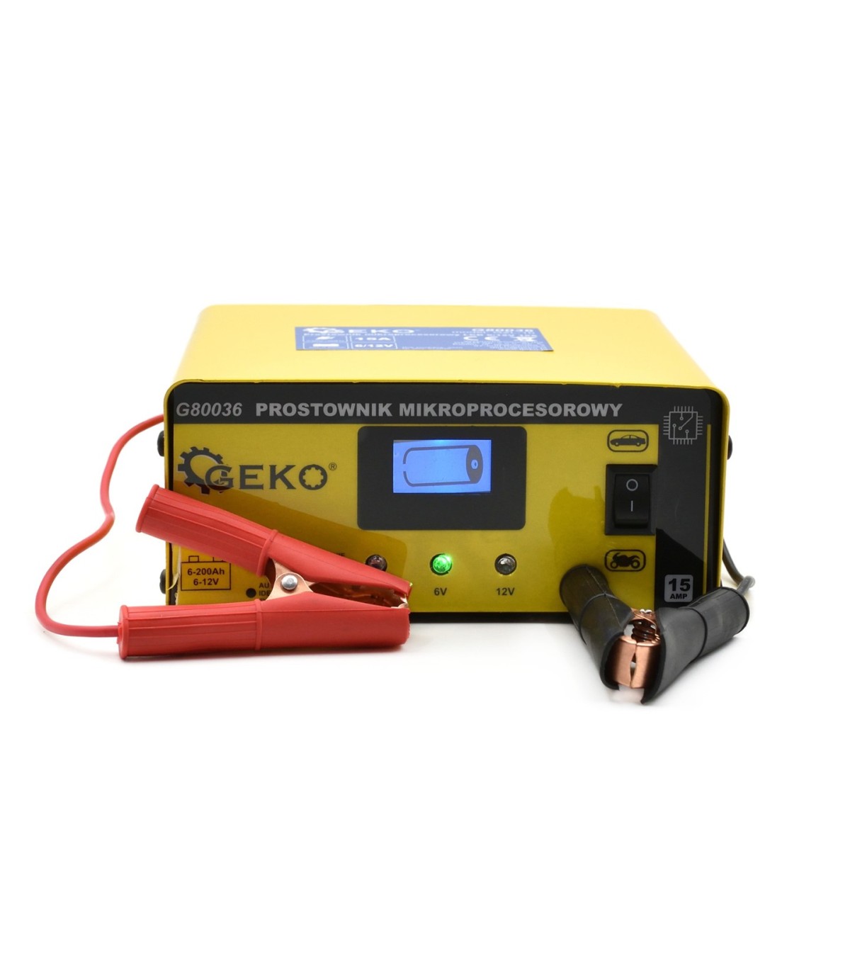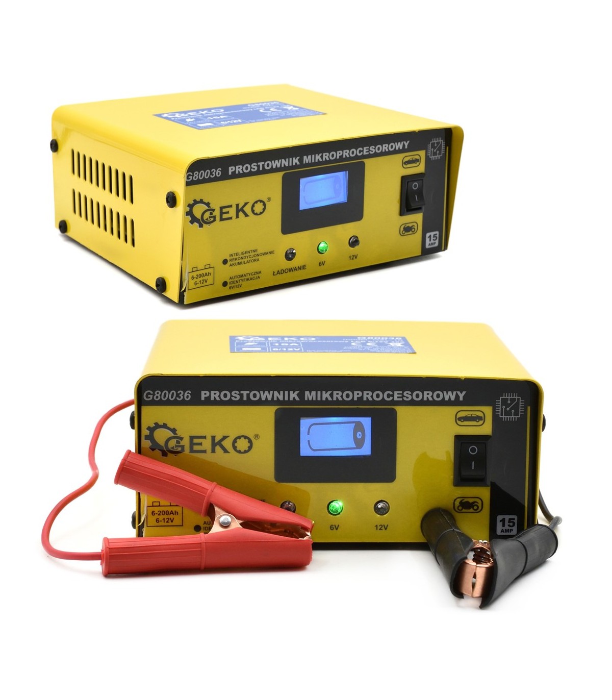 Prostownik mikroprocesorowy do ładowania akumulatorów 6V i 12V. Umożliwia ładowanie akumulatorów prądem o natężeniu od 0A do 15A. Efektywne ładowanie zapewnia 4-etapowa funkcja automatycznego ładowania.