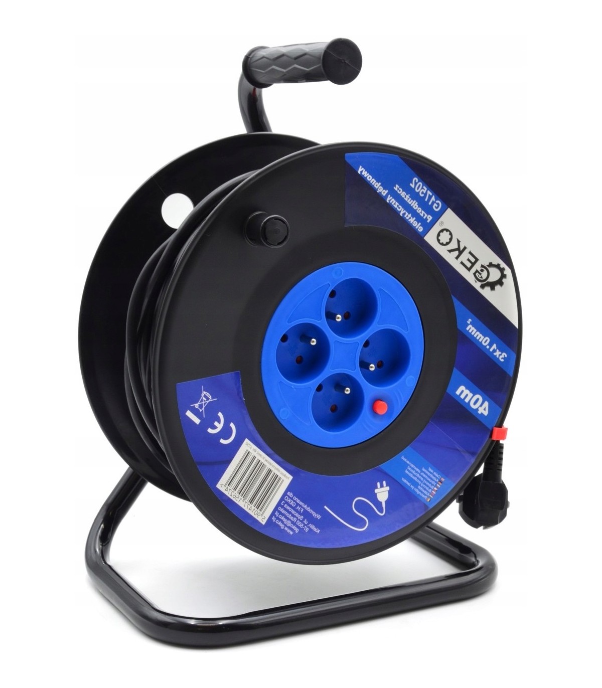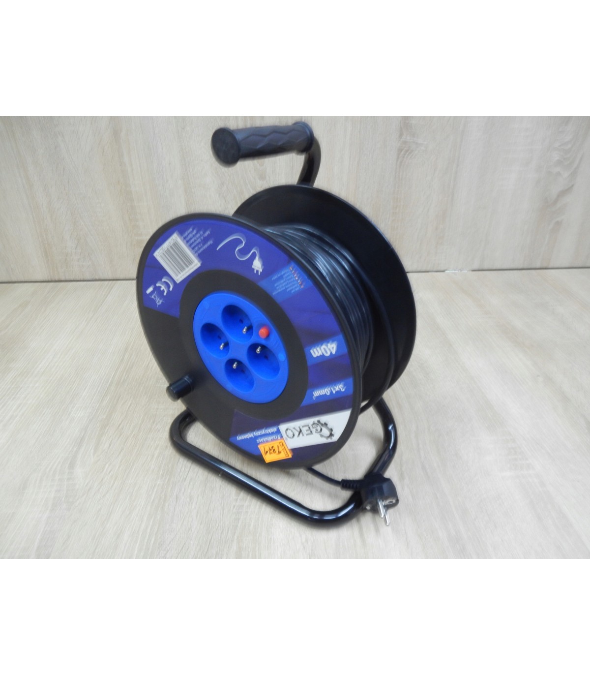 PRZEDŁUŻACZ BĘBNOWY BUDOWLANY 40M 3x1.0 IP20 CZTERY GNIAZDA CZARNY