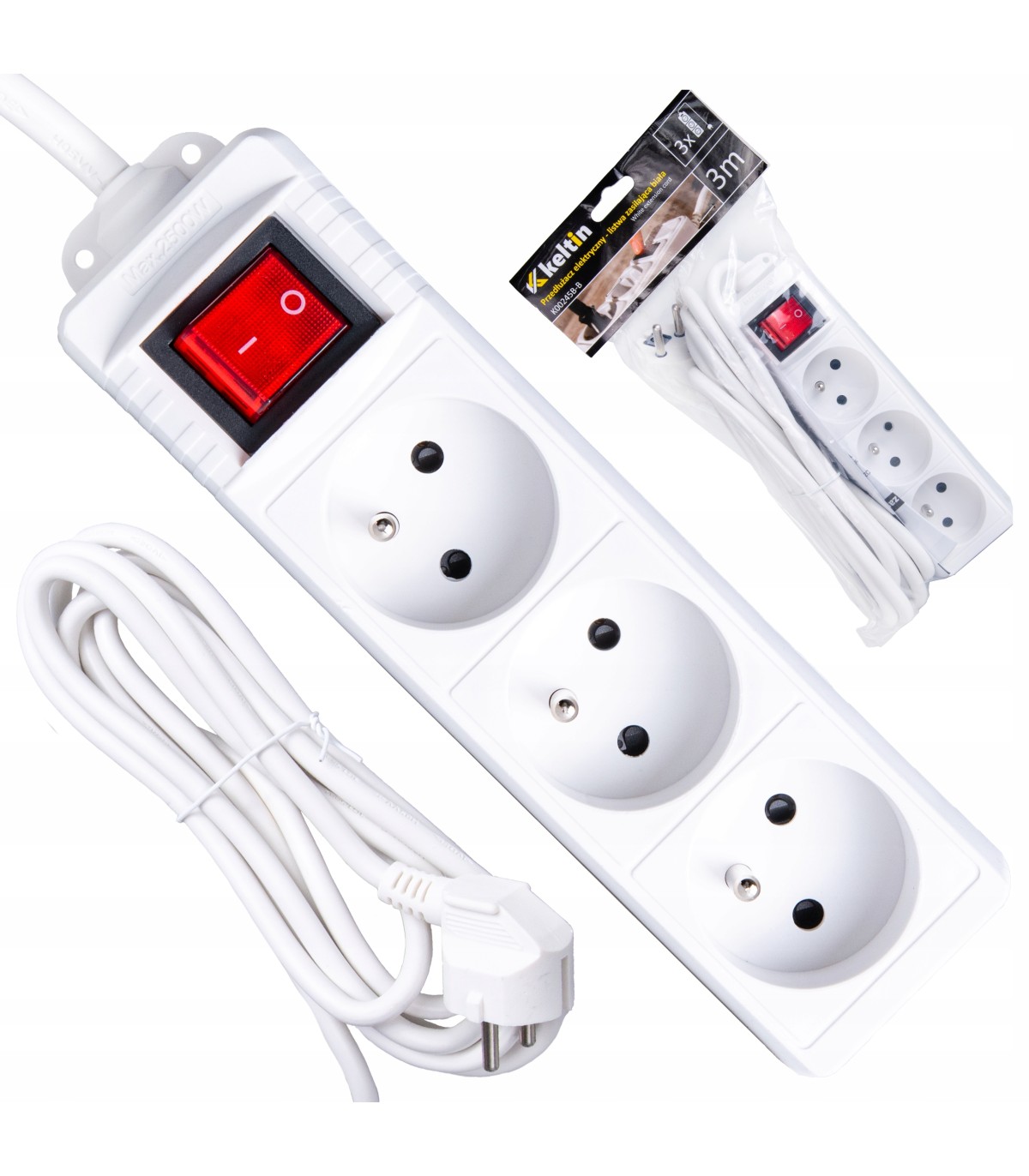 ⭐ Przedłużacz elektryczny 3 gniazda 3m