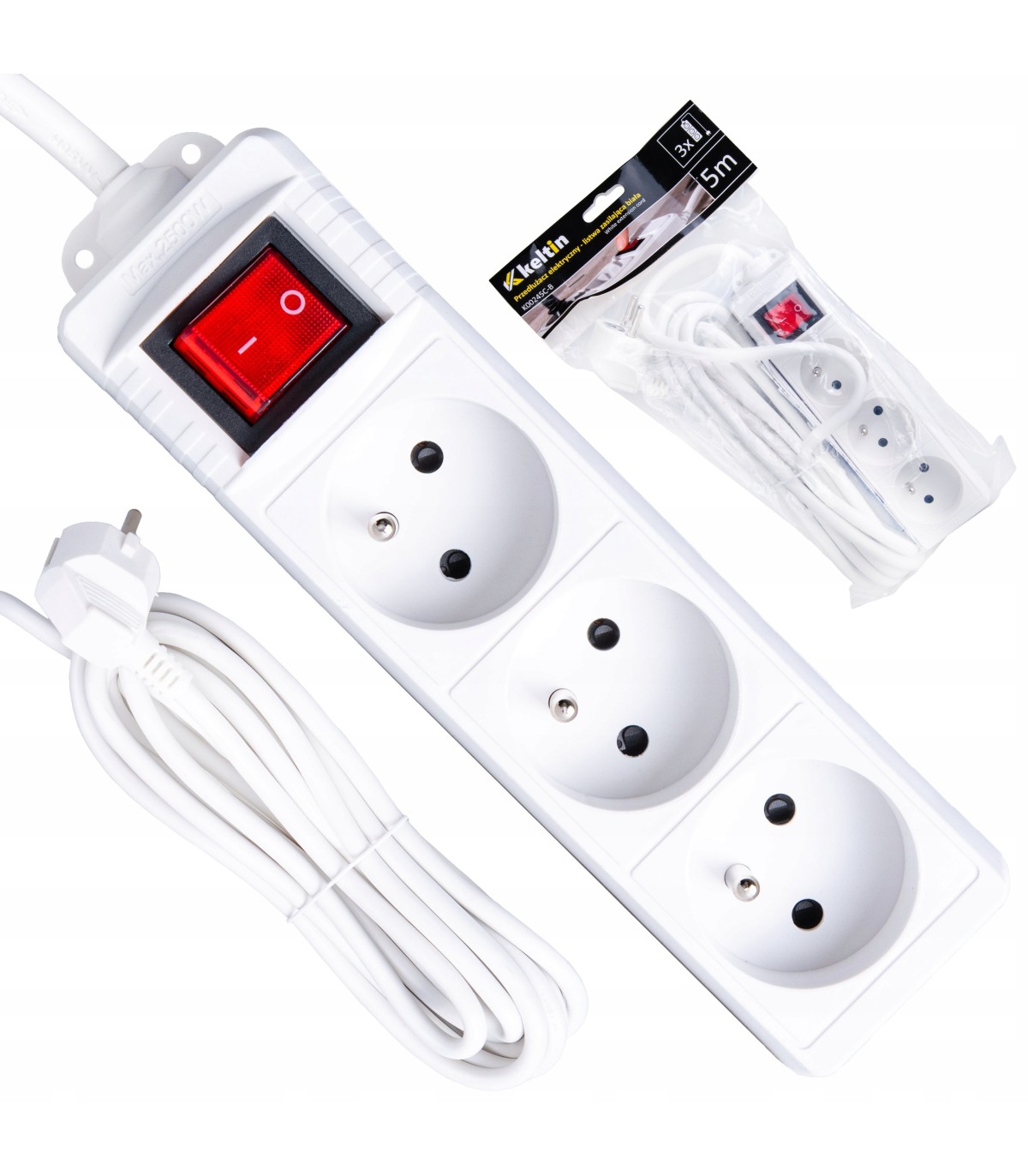 ⭐ Przedłużacz elektryczny 3 gniazda 5m