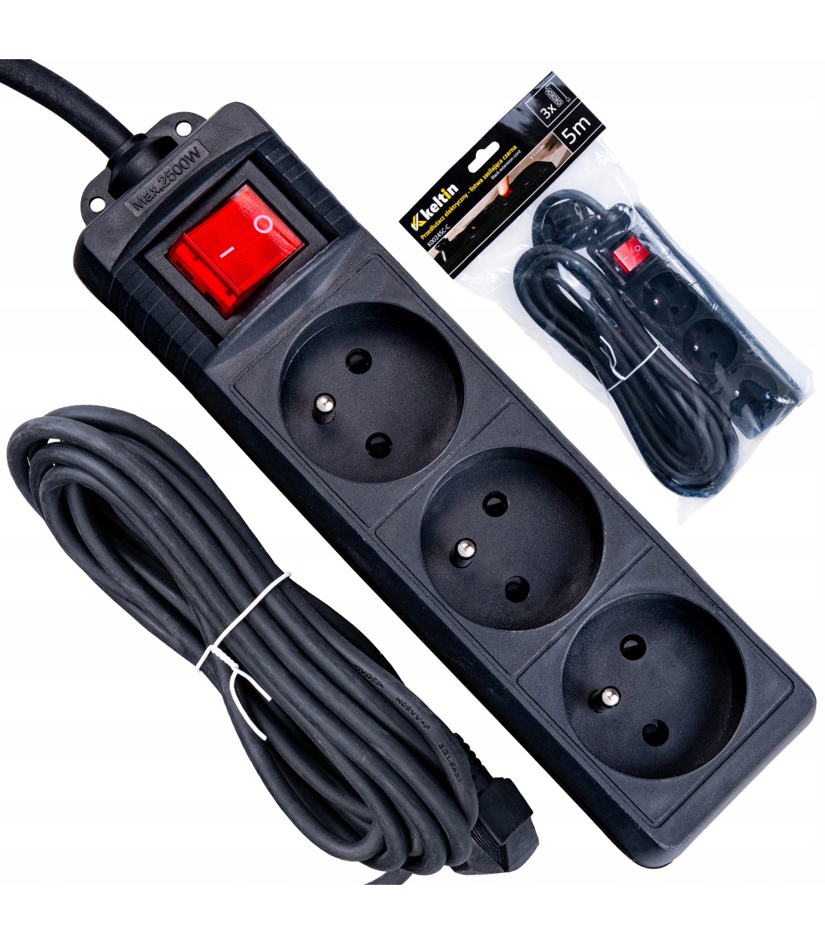 ⭐ Przedłużacz elektryczny 3 gniazda 5m