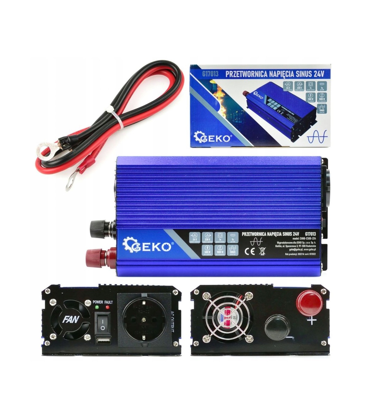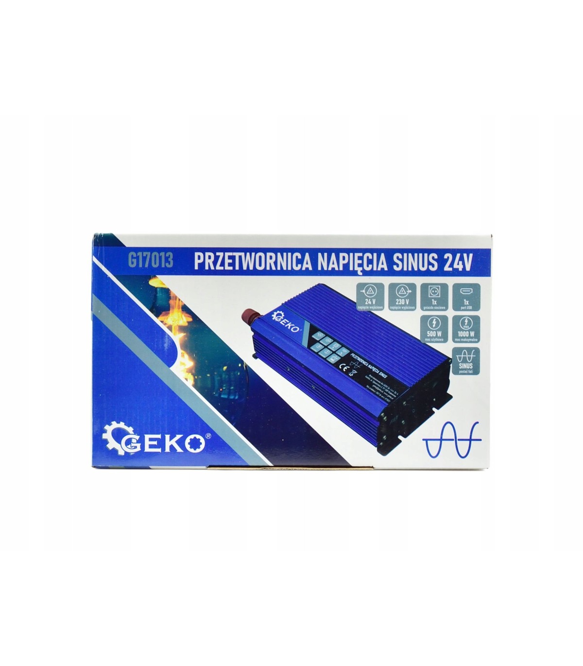 Przetwornica samochodowa GEKO G17013 24V do 230V czysta sinusoida 500W/1000W