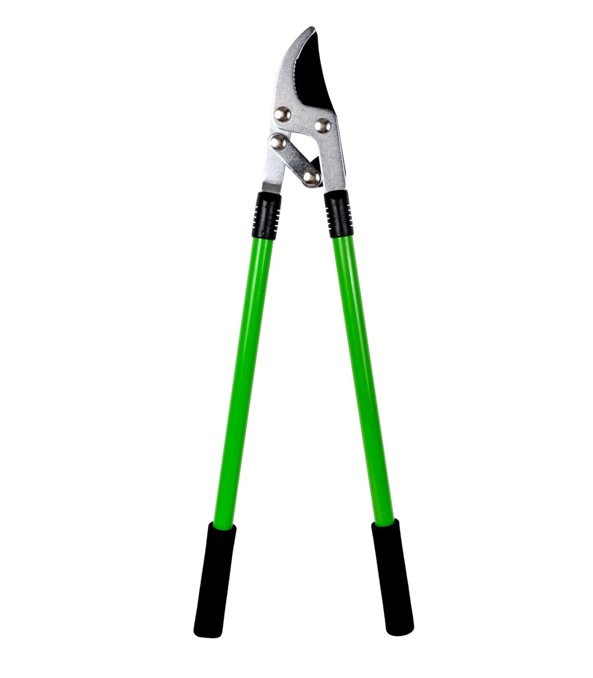 Przegubowy nożycowy sekator do konarów 730 mm Przegubowy nożycowy sekator do gałęzi to profesjonalne narzędzie, które wykorzystasz do prac pielęgnacyjnych w ogrodzie. Świetnie sprawdzi się podczas czynności przygotowujących ogród na wiosnę. Produkt został wykonany ze stali utwardzonej, wykończonej teflonem, dlatego nożyce są odporne na działanie korozji i posłużą przez długi czas. Cechy produktu: ostrza wykonane zostały z wysokiej jakości stali HCS długość całkowita sekatora 730 mm rękojeści sekatora wykonane z pianki poliuretanowej doskonałe do cięcia twardych pędów i gałęzi ostrze z powłoką teflonową Specyfikacja techniczna: Maksymalna średnica cięcia: 50 mm Materiał wykonania ostrza: stal HCS, teflon Materiał wykonania rękojeści: stal, pianka poliuretanowa Typ ostrza: nożycowe Długość całkowita: 730 mm Długość ostrza: 100 mm Długość rękojeści: 540 mm Zastosowanie: cięcie gałęzi, konarów