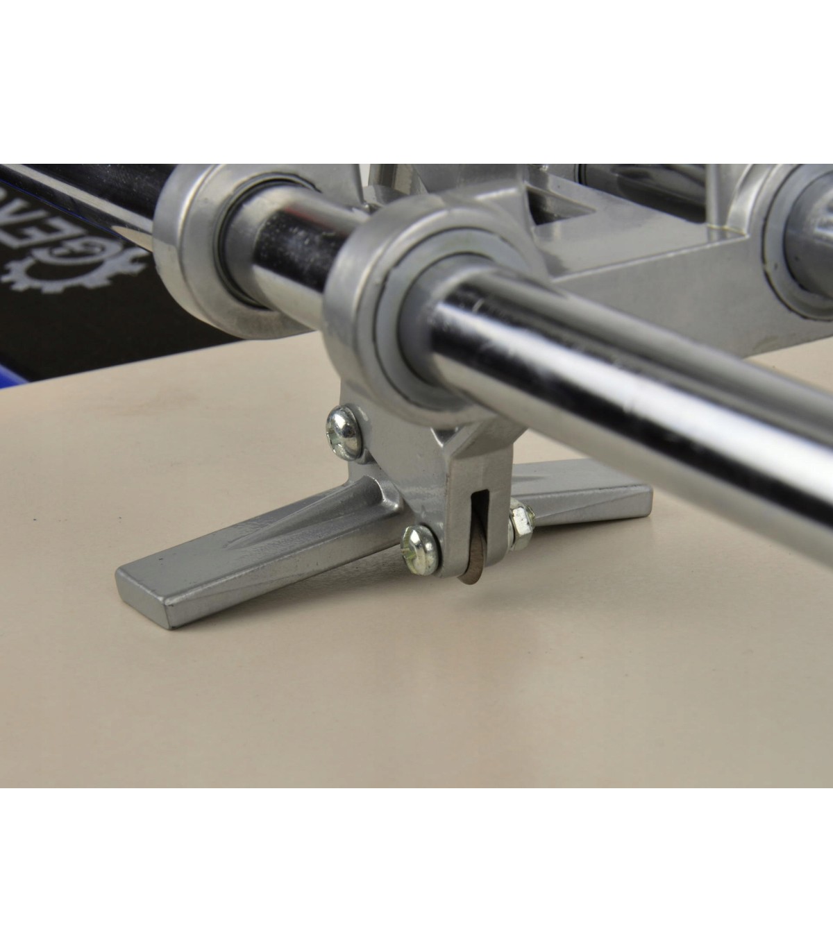 Na dwóch równoległych rurowych prowadnicach umieszczony jest zespół tnący, dodatkowo istnieje możliwość zamocowania specjalnego wykrojnika otworów od Ø 30 do Ø 86mm.