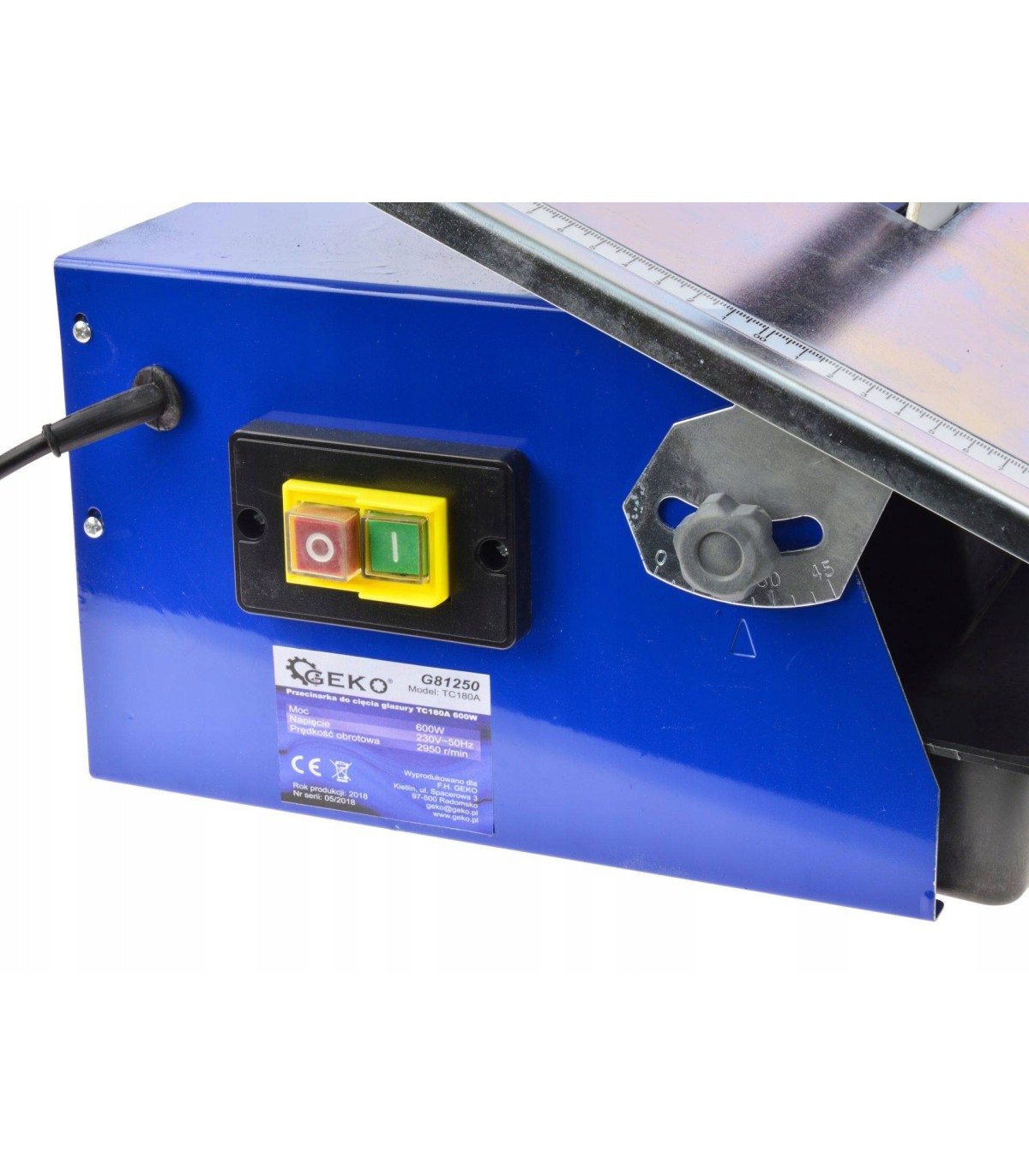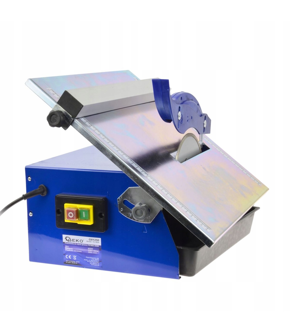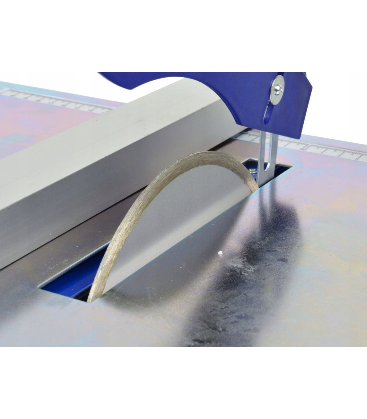 Elektryczna przecinarka do cięcia na mokro wszystkich rodzajów płytek ceramicznych oraz innych materiałów. Regulowany stół pozwala na cięcie pod kątem od 0 do 45 stopni.