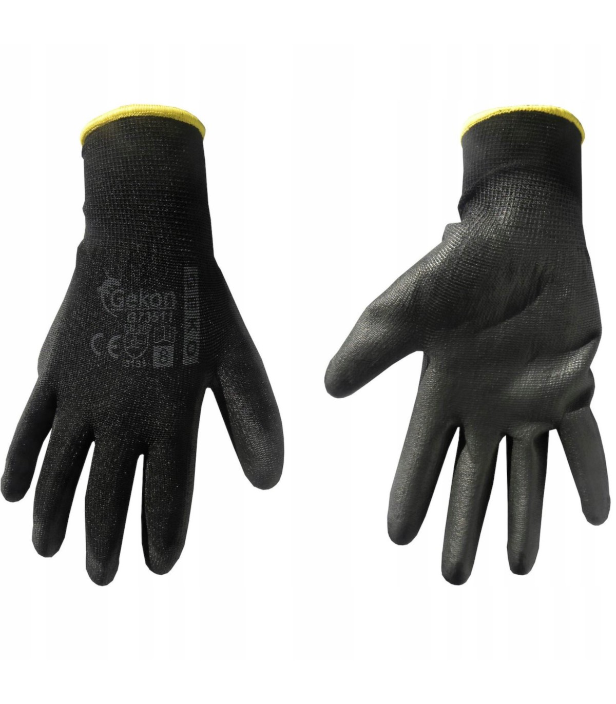 Rękawice ochronne wykonane z elastycznej dzianiny bawełnianej, powlekane cienką warstwą poliuretanu. Zapewniają doskonałą przyczepność i odporność na ścieranie, dzięki czemu świetnie sprawdzają się przy precyzyjnych pracach mechanicznych, ogrodowych, budowlanych oraz domowych.