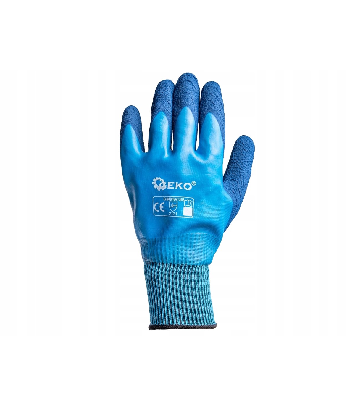 RĘKAWICE ROBOCZE WODOODPORNE POLIESTER-LATEKS ROZMIAR 11 NIEBIESKIE