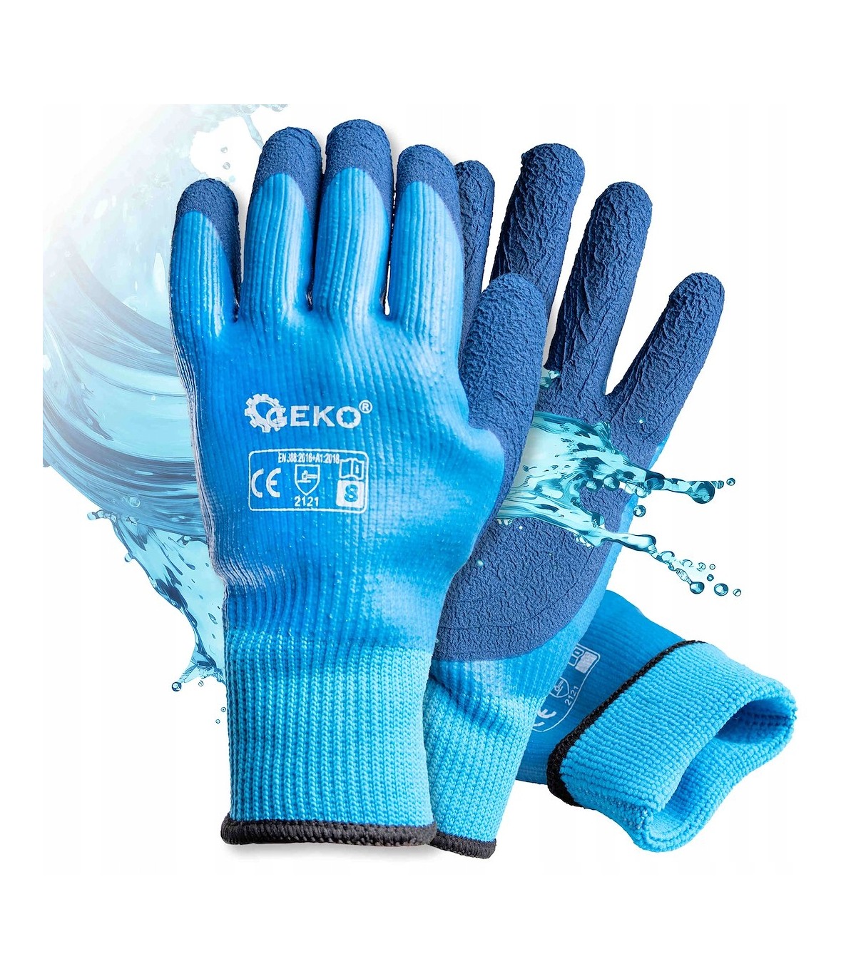 RĘKAWICE ROBOCZE WODOODPORNE POLIESTER-LATEKS ROZ. 8 OCIEPLANE NIEBIESKIE