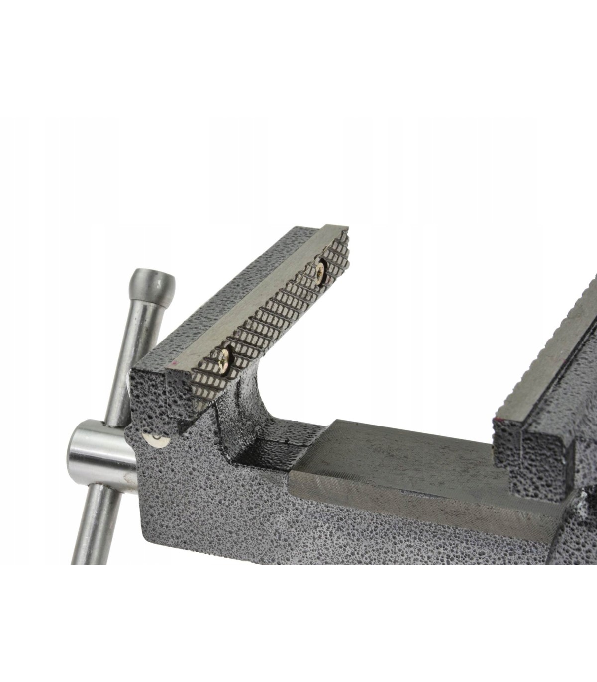 Imadło wykonane zostało z wysokiej jakości materiałów, co przekłada się na jego trwałość oraz długi czas eksploatacji. Stalowe szczęki z antypoślizgowymi nacięciami krzyżykowymi zostały dodatkowo hartowane, co zapewnia mocny chwyt i odporność na zużycie. Funkcja obrotu o 360° znacząco zwiększa komfort pracy i pozwala na łatwe ustawienie materiału pod odpowiednim kątem.