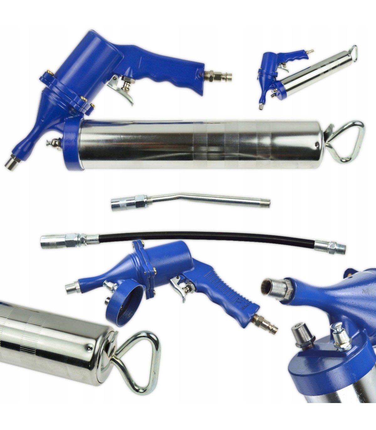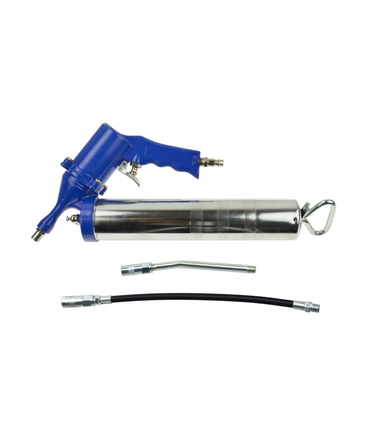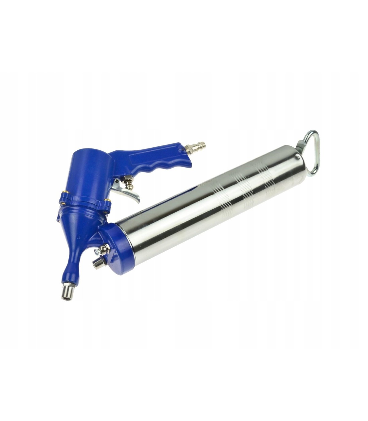 Smarownica pneumatyczna typu pistoletowego z regulowanym kątem pracy. Idealnie nadaje się do smarowania pojazdów, maszyn oraz sprzętu ogrodniczego. Urządzenie zapewnia stały przepływ smaru dzięki gumowemu tłokowi, który działa pod stałym ciśnieniem. Wyposażona została w zawór odpowietrzający.