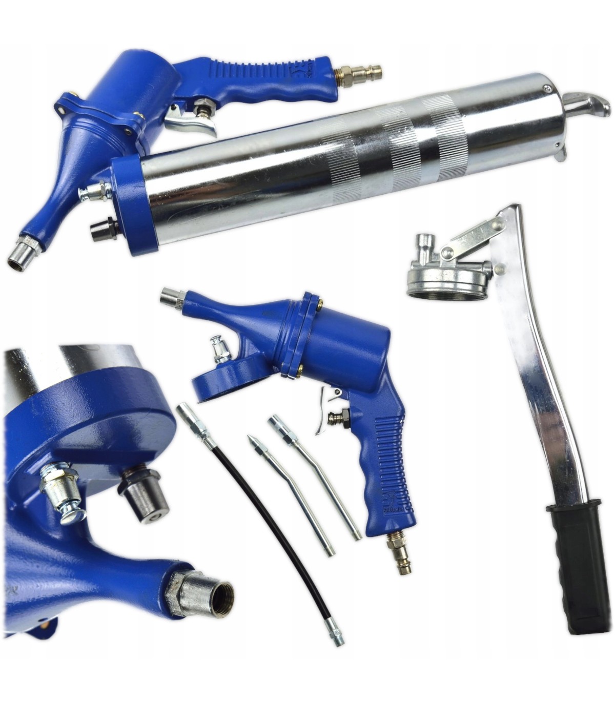 Smarownica pneumatyczno-ręczna przeznaczona do precyzyjnych prac warsztatowych. Dzięki wymiennym głowicom (pneumatycznej i ręcznej) może być stosowana zarówno z kompresorem, jak i ręcznie. Posiada zbiornik o pojemności 400 ml z zaworem odpowietrzającym i odprężającym. Pasuje do standardowych kalamitek i kartuszy smarowych 400 g.