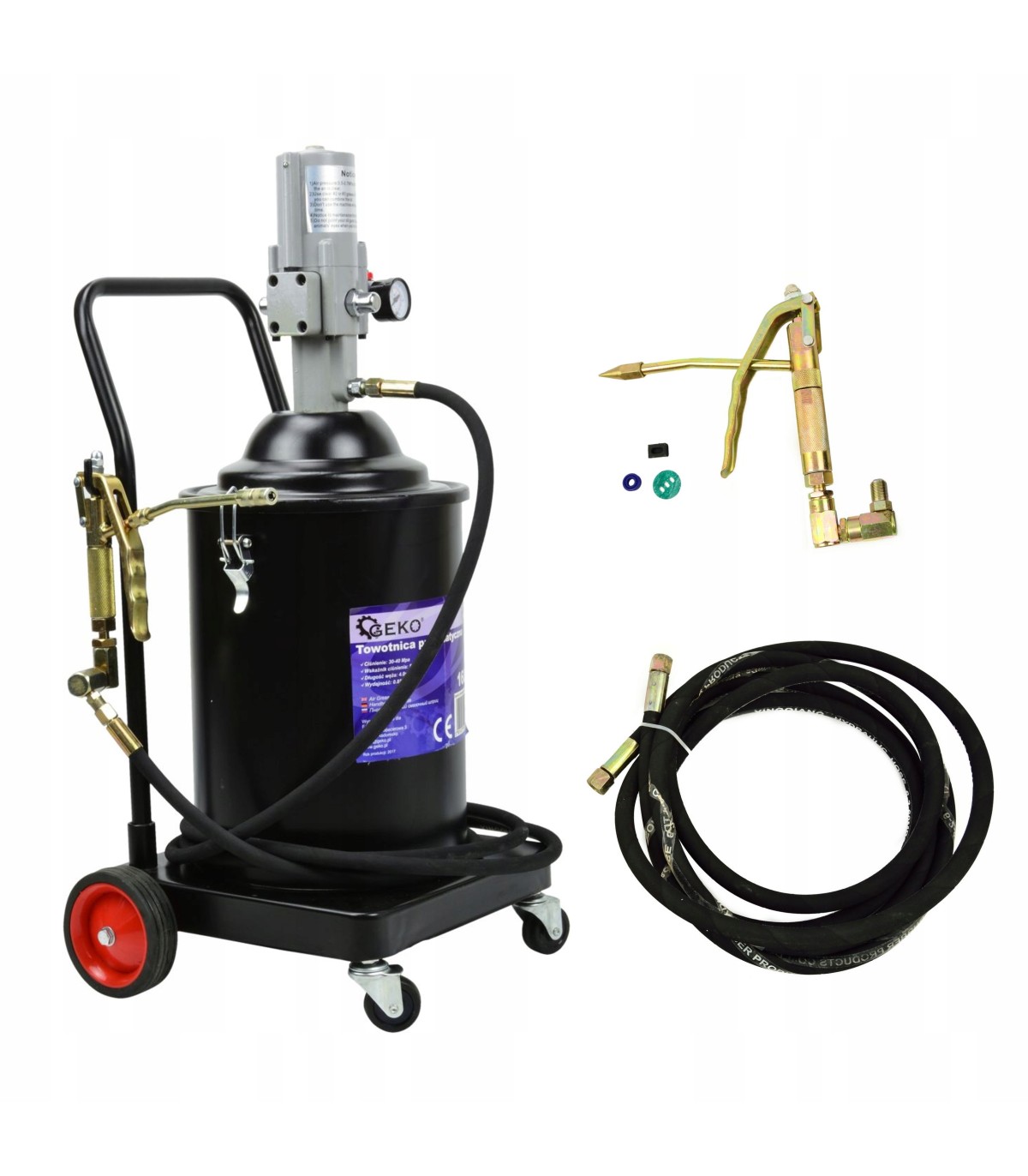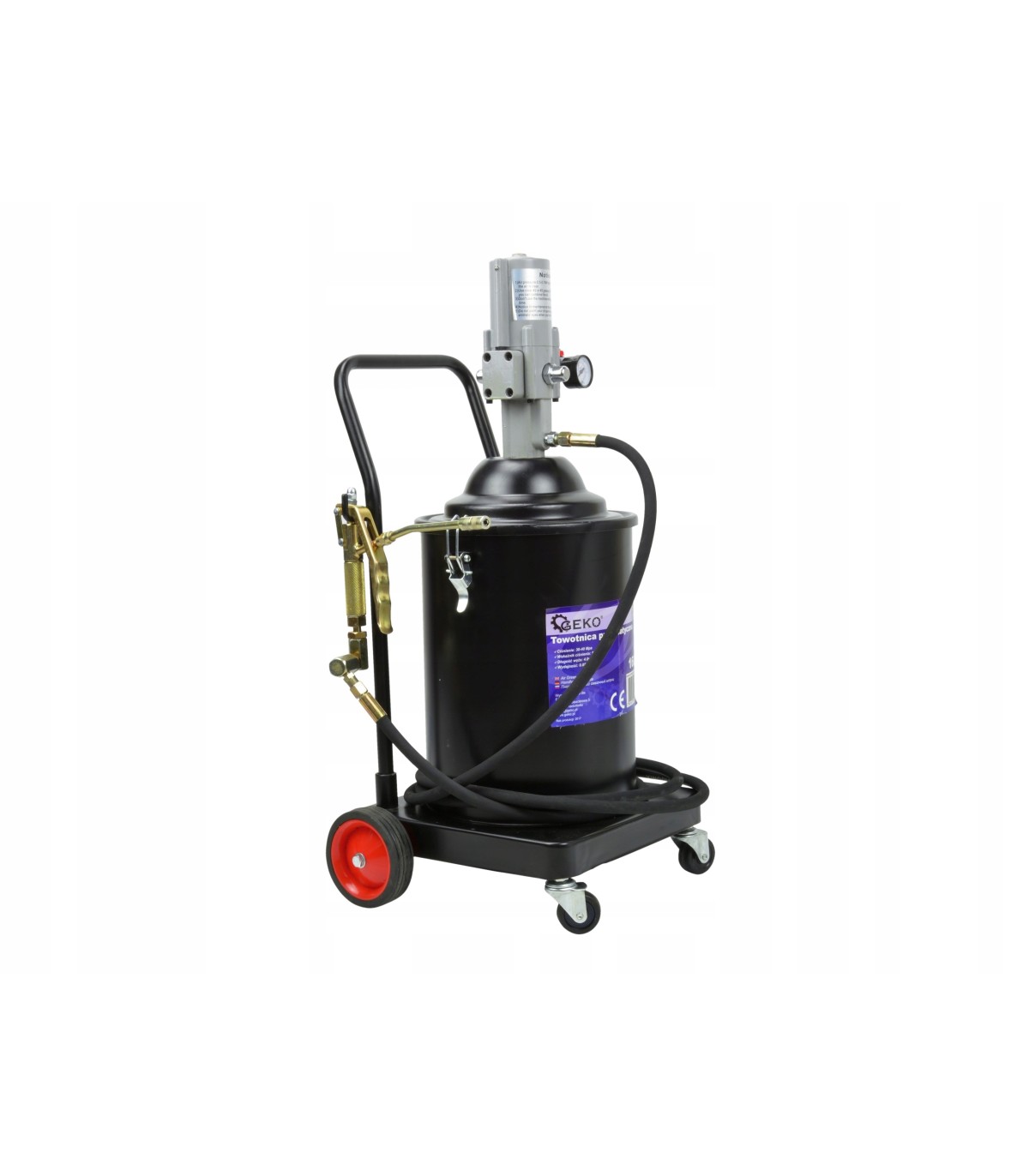 Smarownica firmy GEKO wyposażona jest w pompę pneumatyczną, przez co można podłączać ją bezpośrednio z kompresorem.
