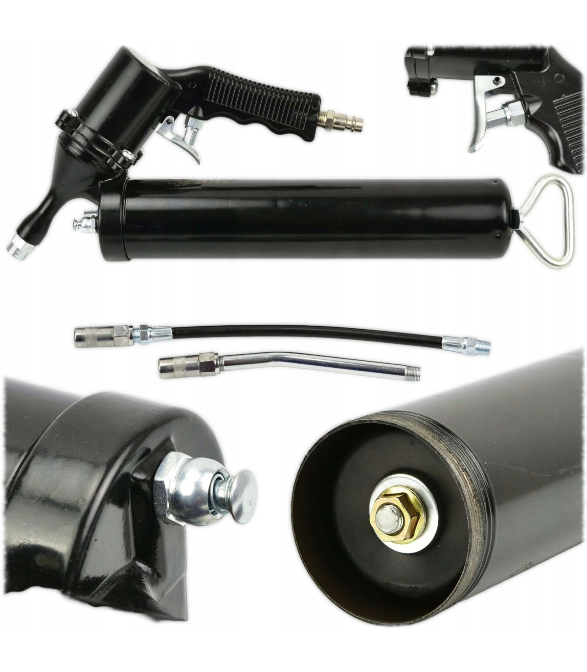Profesjonalna smarownica pneumatyczna o pojemności 400ml, przeznaczona do intensywnych prac serwisowych w przemyśle ciężkim, warsztatach mechanicznych, maszynach budowlanych, rolniczych oraz serwisie samochodowym. Kompatybilna ze standardowymi kalamitkami oraz kartuszami 400 g i smarem luzem. Wyposażona w zawór odpowietrzający i odprężający.