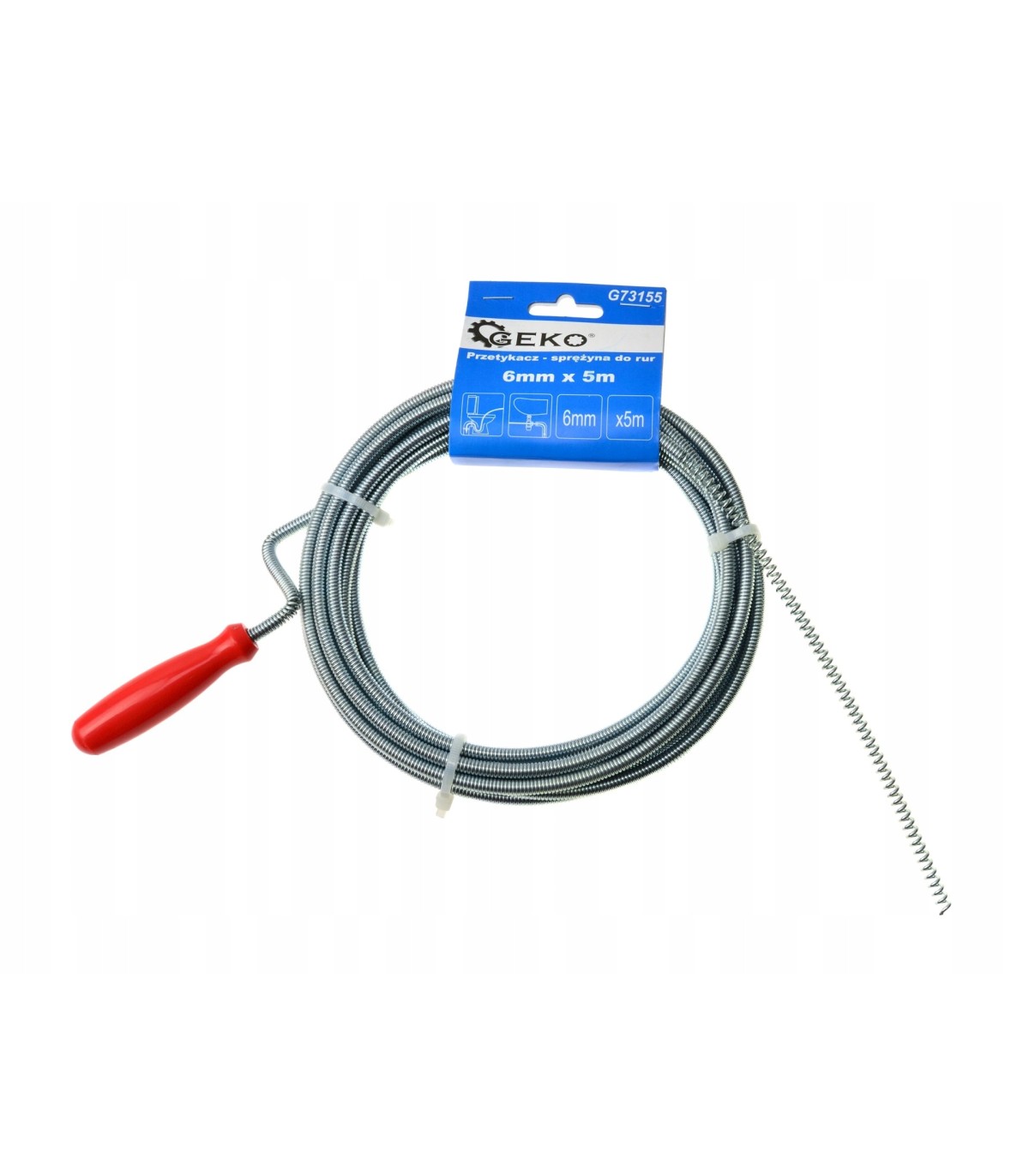 Wykonana z ocynkowanego drutu sprężynowego o średnicy 6 mm i długości 5 m, idealnie nadaje się do usuwania zatorów w kanalizacji wodno-ściekowej, zapewniając skuteczne i szybkie rozwiązanie problemów z zatkanymi rurami.
