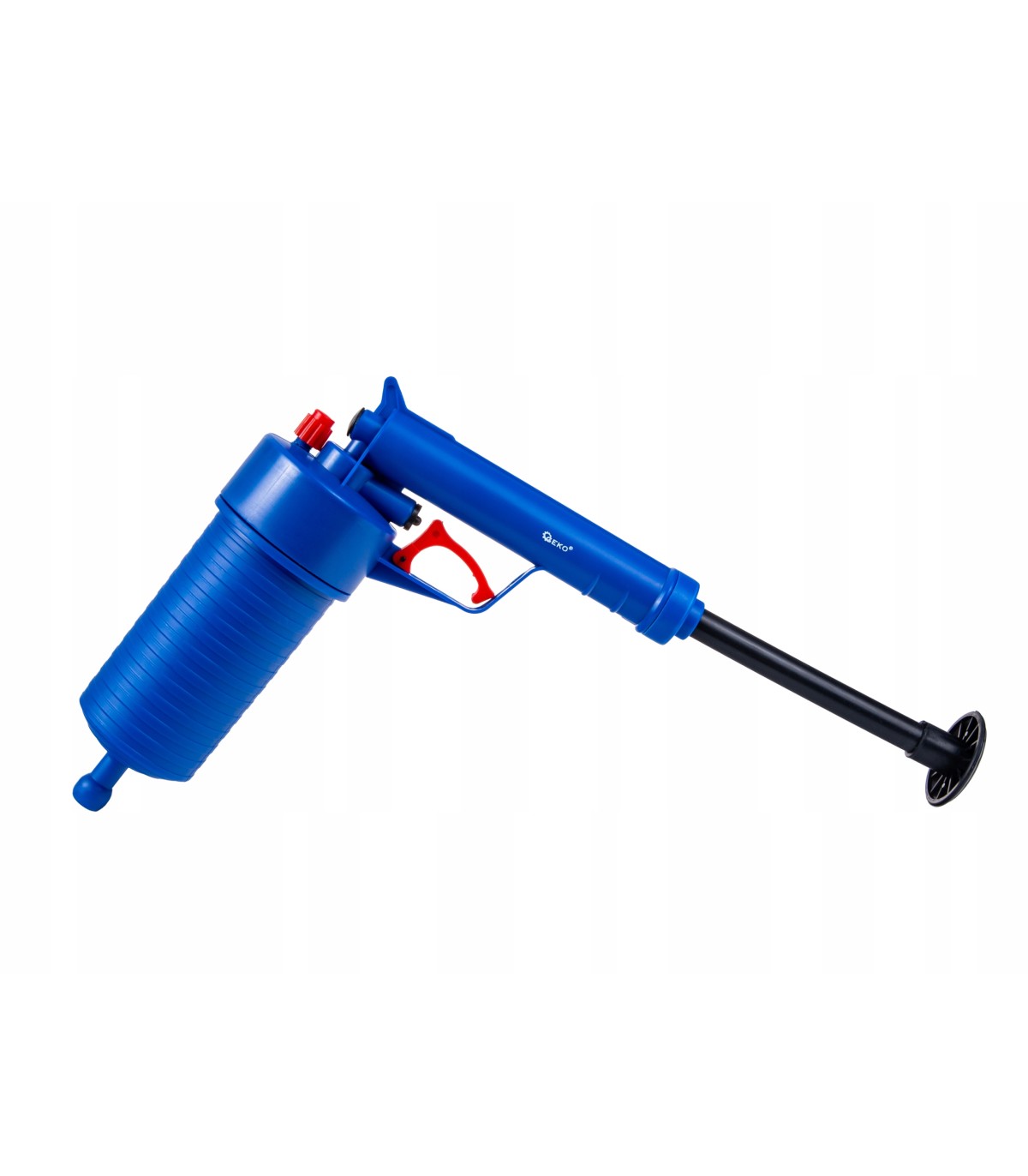 ✅ Nie potrzebujesz prądu ani baterii! Pompa działa w pełni mechanicznie, wykorzystując ręczny tłok do sprężania powietrza. Wystarczy kilka ruchów, aby osiągnąć odpowiednie ciśnienie, a następnie jedno naciśnięcie spustu uwalnia silny strzał powietrza, który usuwa zator.