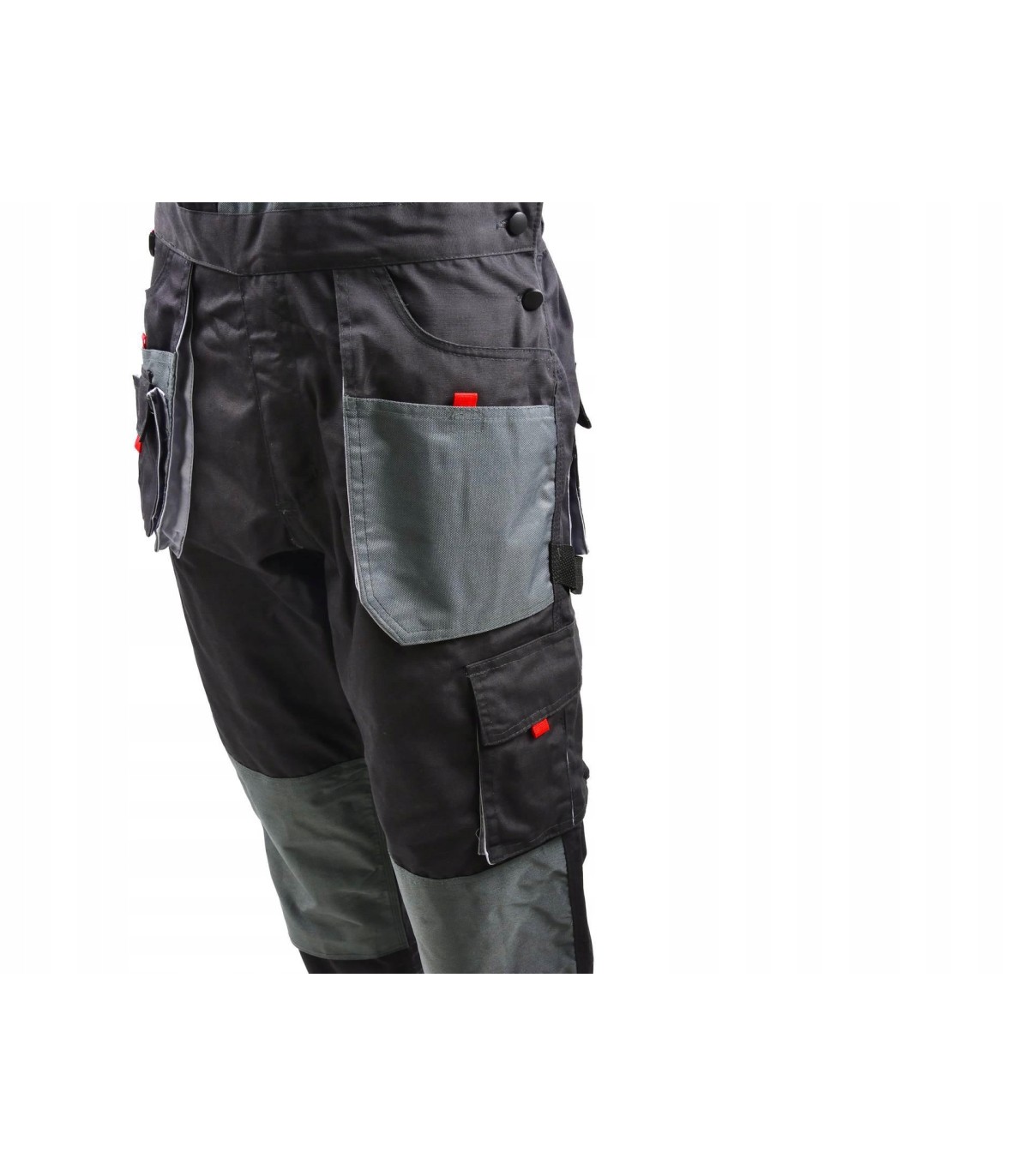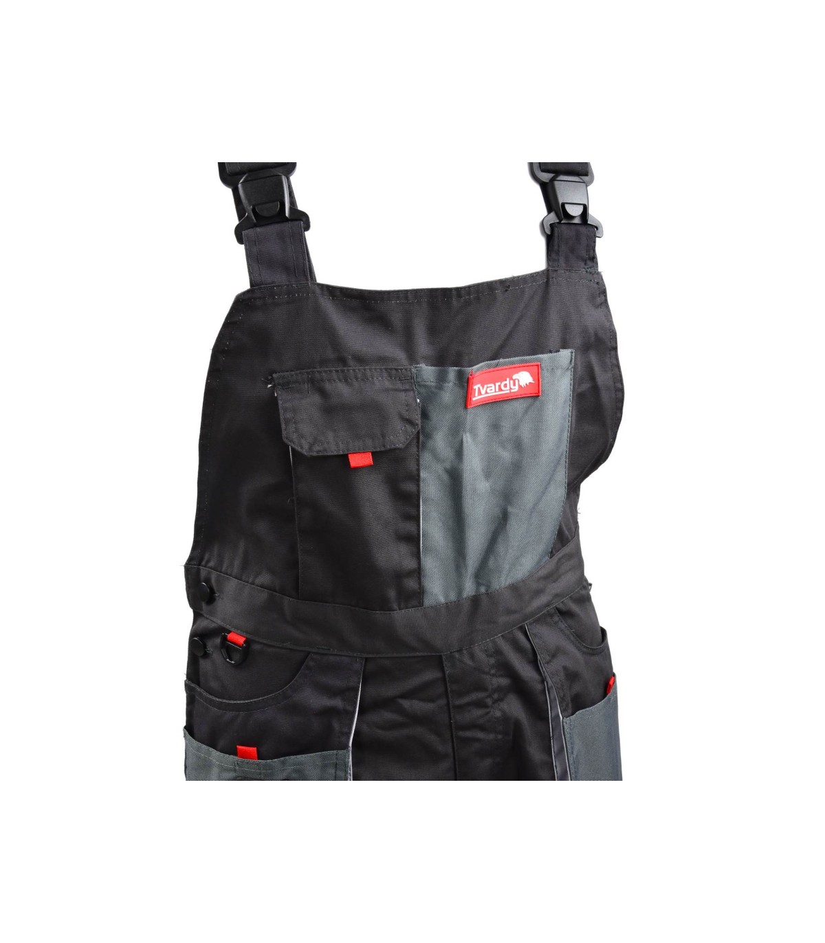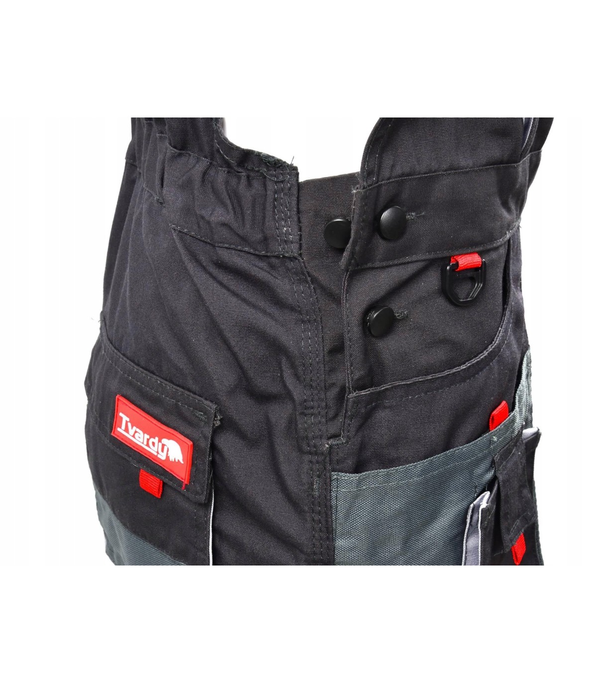 Spodnie robocze na szelkach profesjonalnej Polskiej marki TVARDY. Wykonane z wysokiej jakości materiału dodatkowo wzmocnionego w miejscach narażonych na przetarcia. Spodnie idealnie sprawdzą się podczas wszelkiego rodzaju prac domowych jak i profesjonalnych. Posiadają 11 funkcjonalnych kieszeni w tym 8 zapinanych na rzep. Dzięki dodatkowym wzmocnieniom kieszenie wytrzymują duże obciążenie. Spodnie wyposażone w kieszeń na smatrphone'a w miejscu najmniej narażonym na uszkodzenie. Posiadają wygodne szelki zapewniające komfort podczas pracy.