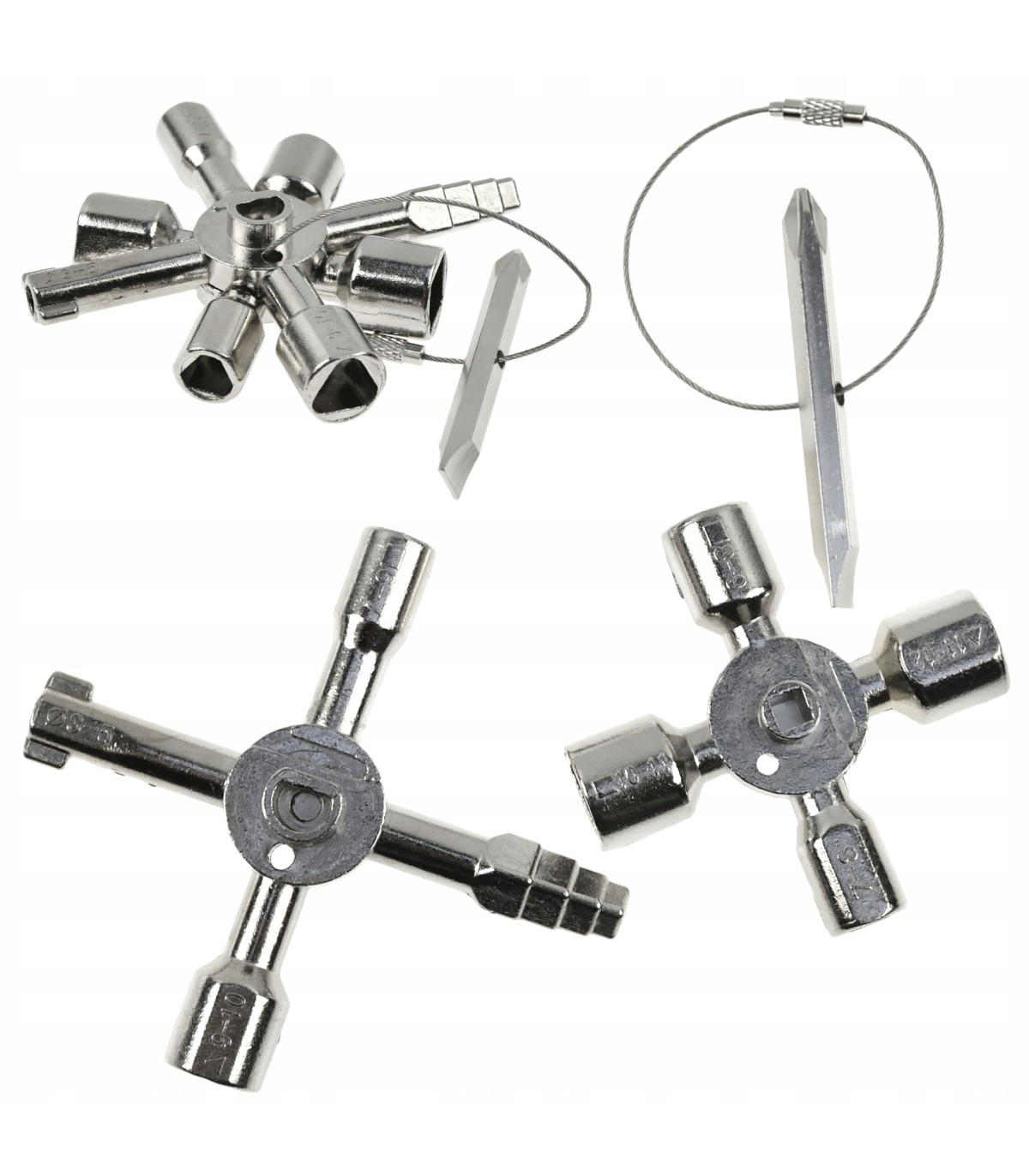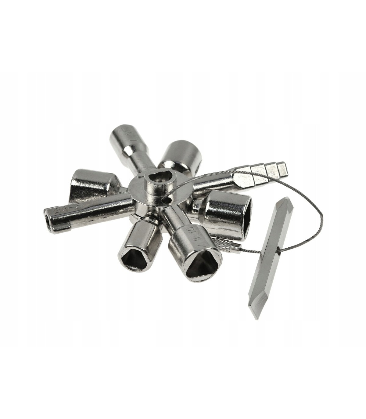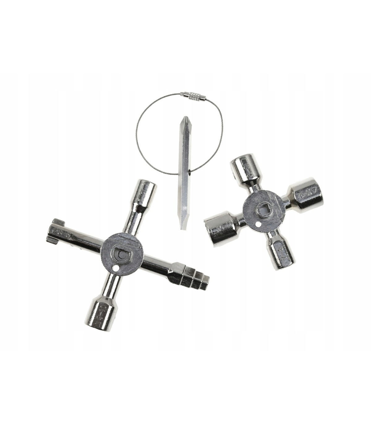 Uniwersalny klucz wyposażony w końcówki do otwierania i zamykania większości popularnych systemów skrzynek oraz szaf sterowniczych. Zamki tego typu stosuje się w instalacjach elektrycznych, grzewczych, sanitarnych, gazowych w windach oraz w wielu innych urządzeniach technicznych.