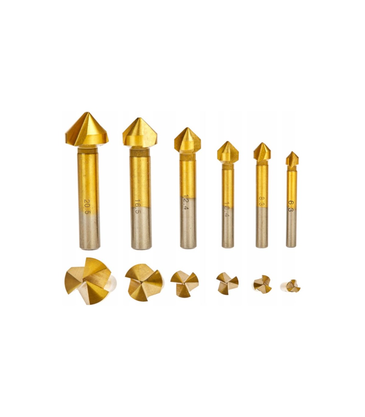 Pogłębiacze stożkowe do metalu. Pogłębiacze posiadają ostrza pod kątem 90o, wykonane ze stali szybkotnącej HSS. Przeznaczone do powiększania otworów ,chowania łbów wkrętów jak i również do fazowania krawędzi już wywierconych otworów.