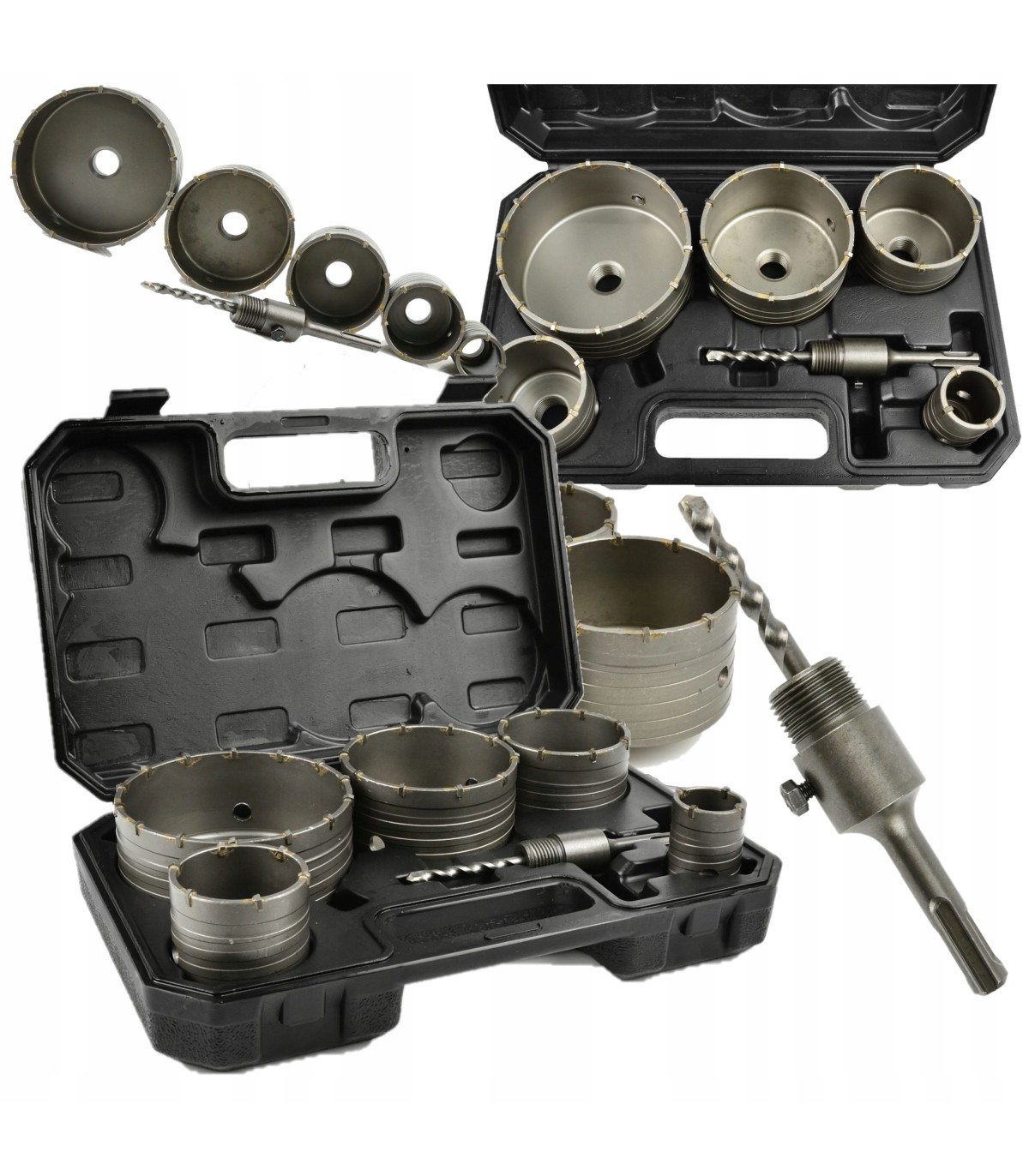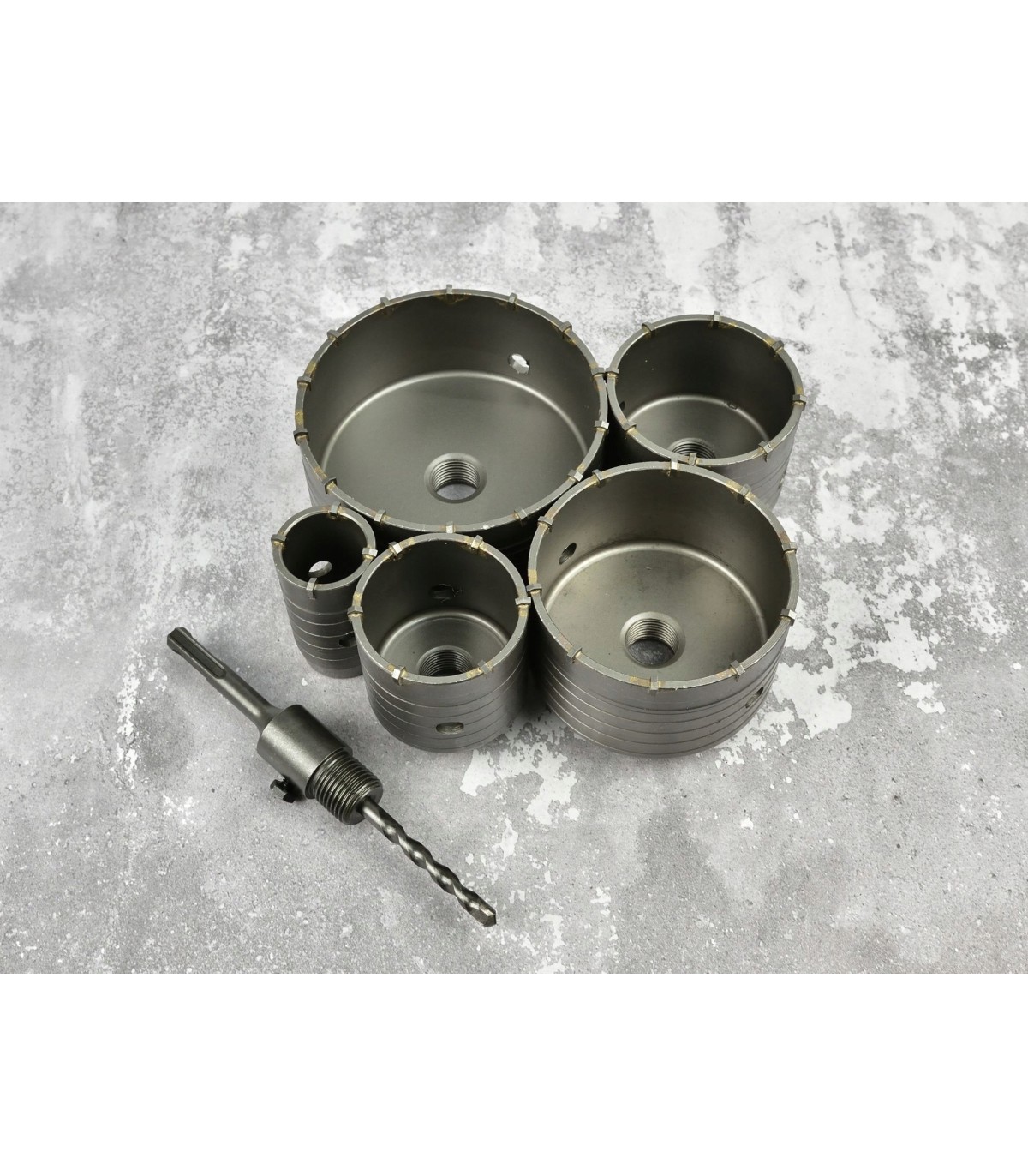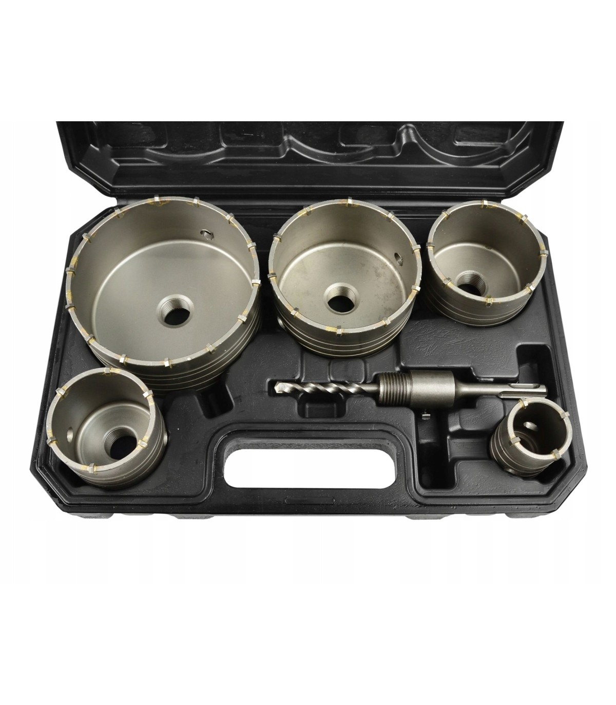 ⭐ Zestaw otwornic / koron wiertarskich 6el. Wykonane z materiałów najwyższej jakości. Wieniec zębaty otwornic wykonany został z węglików spiekanych. W komplecie znajduje się adapter z wiertłem prowadzącym, przeznaczony do stosowania z wiertarkami posiadającymi uchwyt montażowy SDS-Plus.