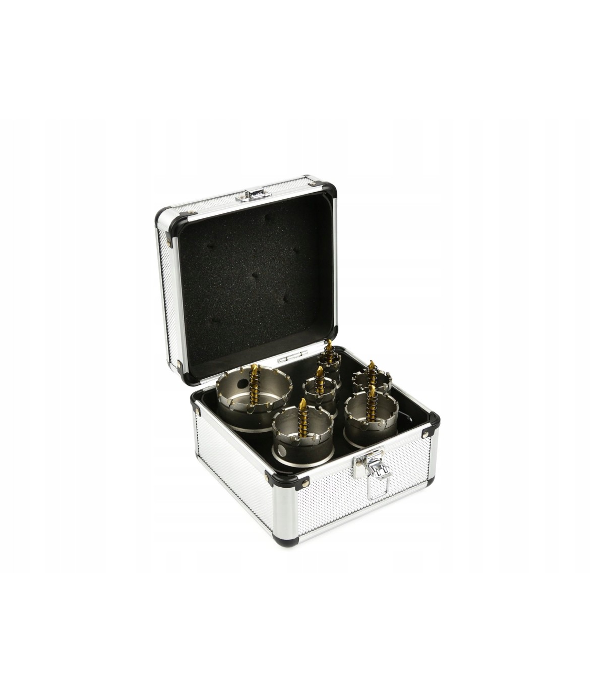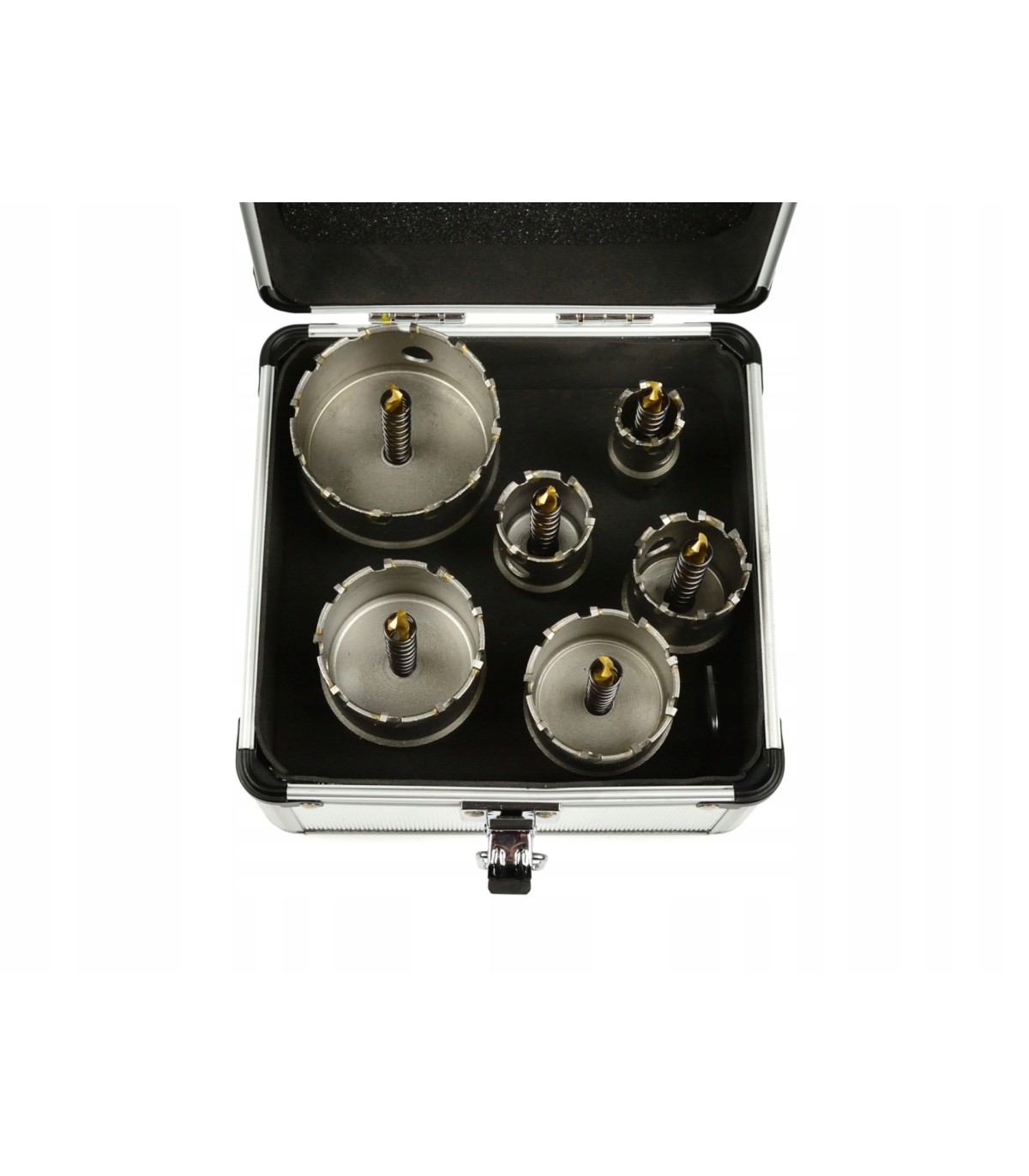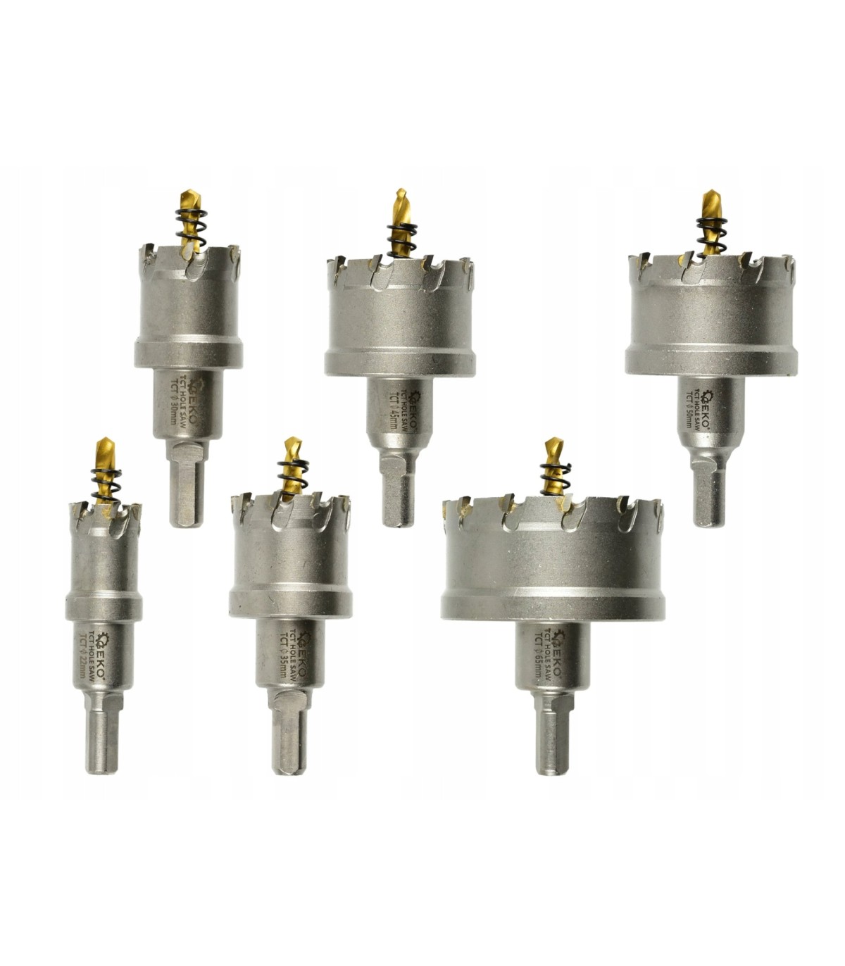 ⭐ Zestaw 6 szt. otwornic TCT do metalu w rozmiarach 22-65mm. Ostrza wykonane z węglików spiekanych, które charakteryzują się znacznie większą twardością oraz odpornością na wysokie temperatury w porównaniu do stali szybkotnącej HSS. Przeznaczone do wykonywania większej średnicy otworów w stali, żeliwie, metalach kolorowych, drewnie, tworzywach sztucznych itp. Dla zwiększenia precyzji cięcia zastosowano wiertło prowadzące ze stali HSS. Sprężyna zamocowana na wiertle prowadzącym, pozwala w łatwy sposób usunąć urobek.
