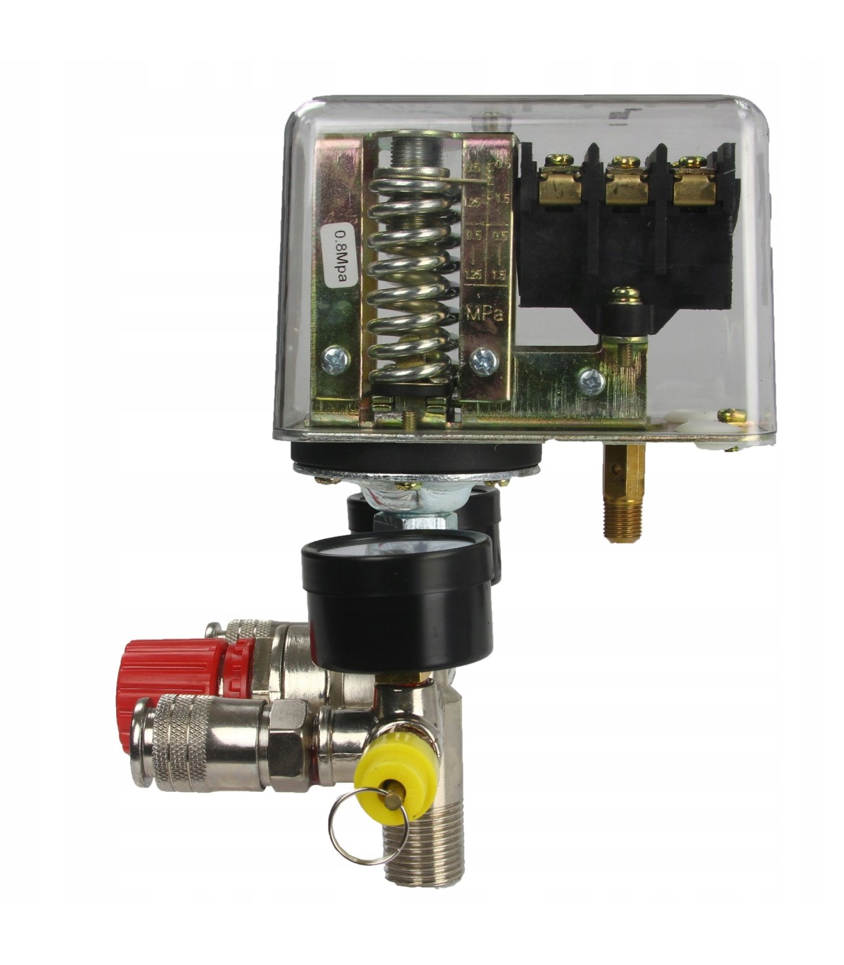 PRESOSTAT WŁĄCZNIK CIŚNIENIOWY 3 FAZOWY DO KOMPRESORA Z MANOMETREM