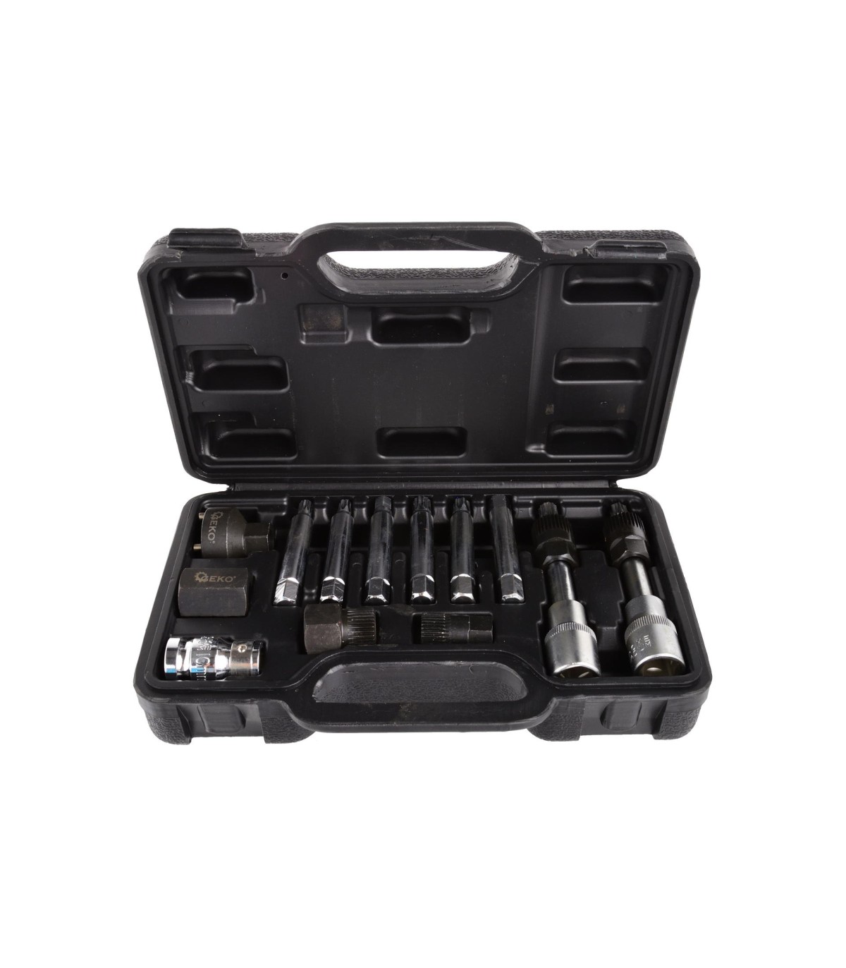 ✅ Zestaw kluczy do montażu i demontażu alternatorów. Klucze wykonane zostały z wysokogatunkowej stali chromowo-wanadowej CrV, dzięki czemu są wytrzymałe i odporne na uszkodzenia. Klucze umożliwiają jednoczesne odkręcanie śruby mocującej koło pasowe (za pomocą odpowiedniego bitu) oraz przytrzymywanie koła ze sprzęgłem (za pomocą specjalistycznej nasadki).✅ Kolor walizki może się różnić w zależności od dostawy.