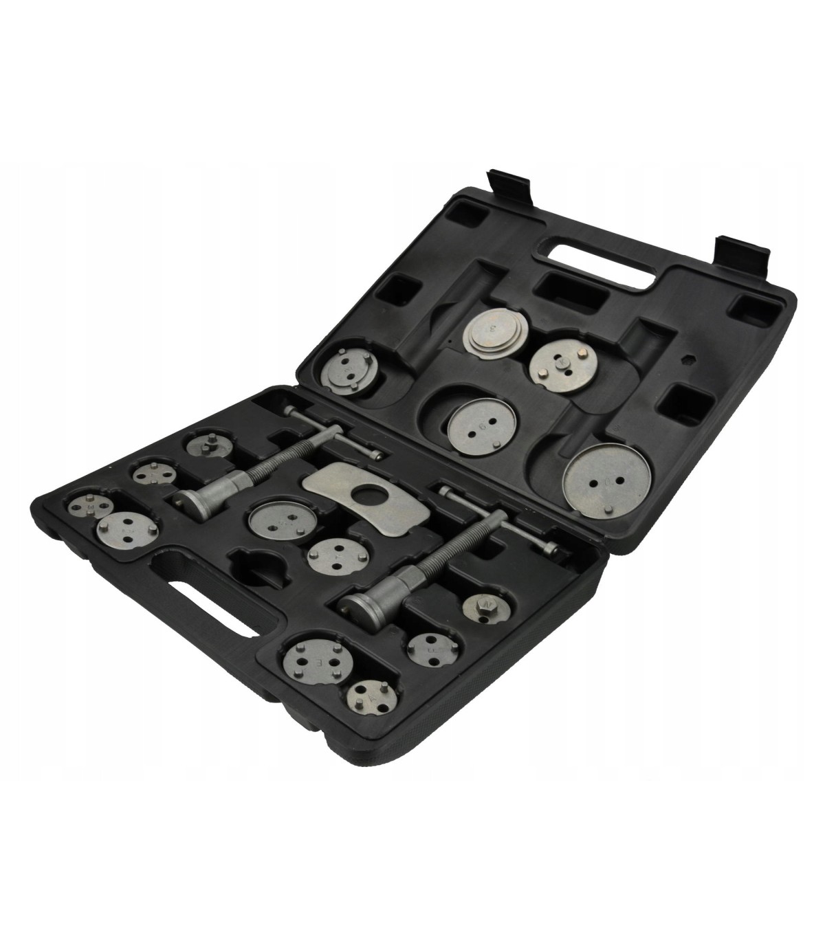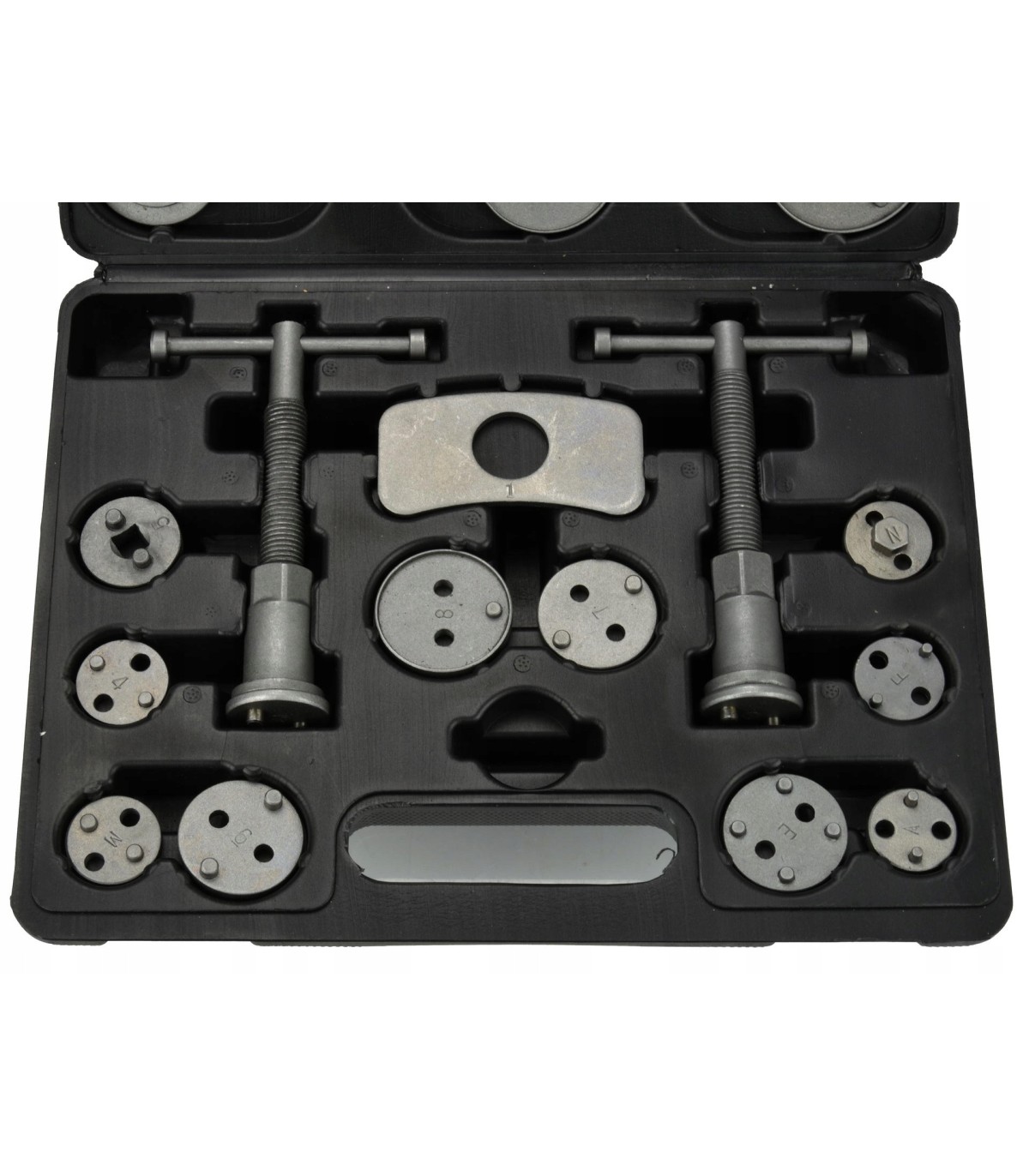 ⭐ Profesjonalny 18-elementowy zestaw do cofania / wyciskania tłoczków hamulcowych, niezbędny przy naprawach pojazdów wyposażonych w hamulce tarczowe.