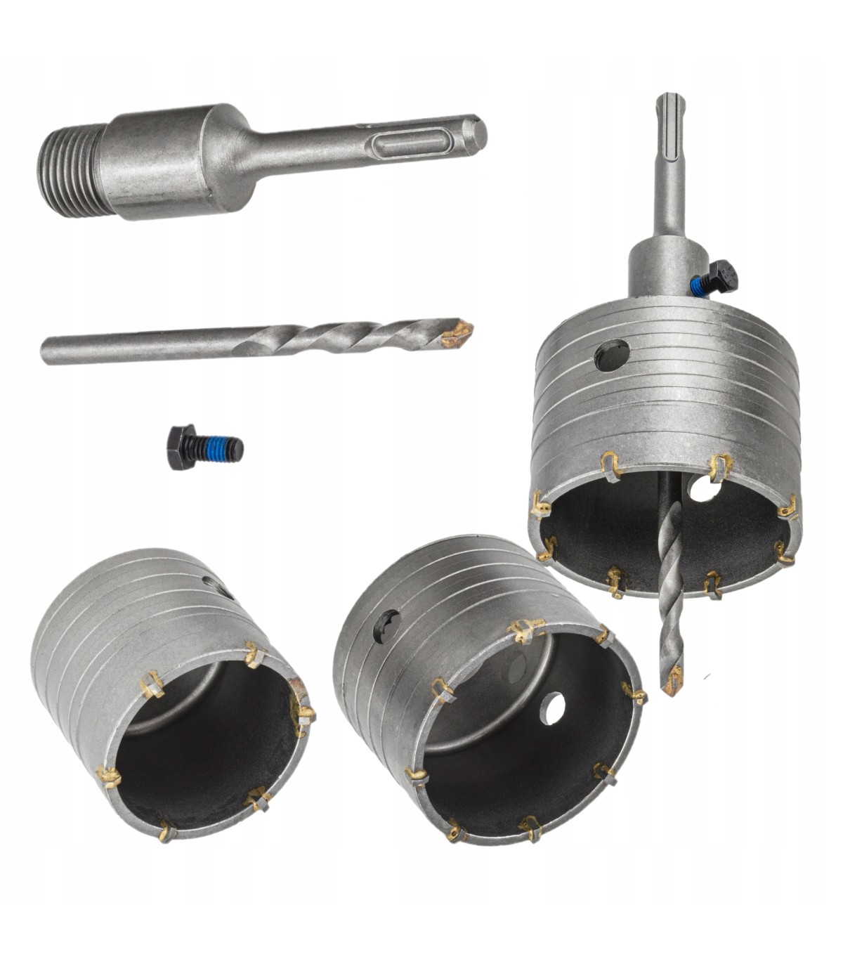 ✨ Bezproblemowy montaż: W zestawie znajduje się uchwyt SDS+ oraz wiertło prowadzące, które ułatwiają montaż frezów do narzędzia oraz precyzyjne prowadzenie w czasie wiercenia, co przekłada się na wygodę i pewność działania.