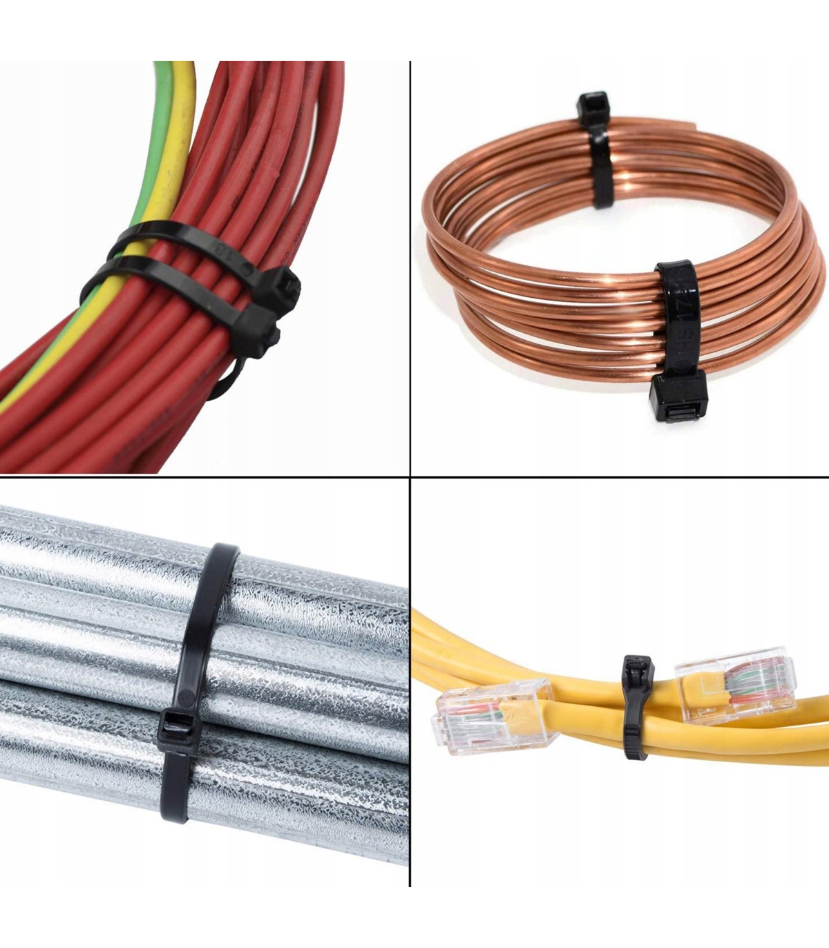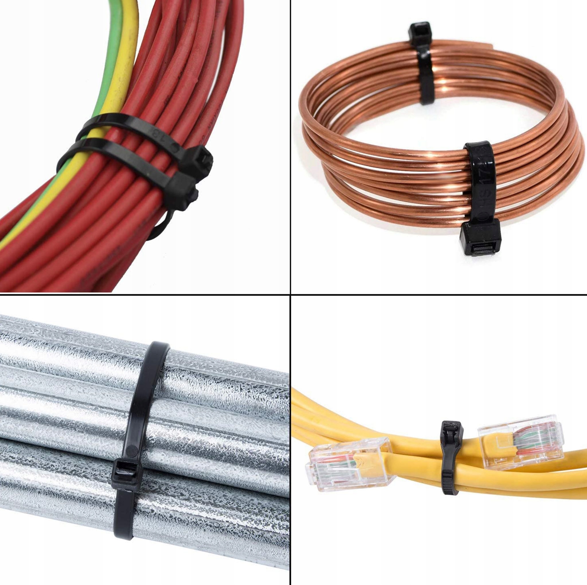 ⭐ Opaski zaciskowe 2.5 x 200 mm, w kolorze czarnym, pakowane po 100 szt. Przeznaczone są do łączenia wiązek kabli elektrycznych, przewodów, rurek, węży lub też do szybkich doraźnych naprawach. Proste w montażu. Posiadają dużą odporność na zrywanie. Dostępne są w wielu rozmiarach oraz kolorach. Gęste ząbki na całej długości pozwalają na precyzyjne dopasowanie pętli opaski do rozmiaru wiązki. Opaski możemy zaciskać ręcznie lub za pomocą specjalnego przyrządu.