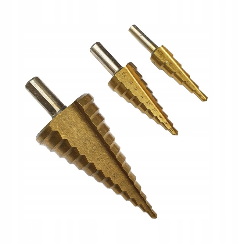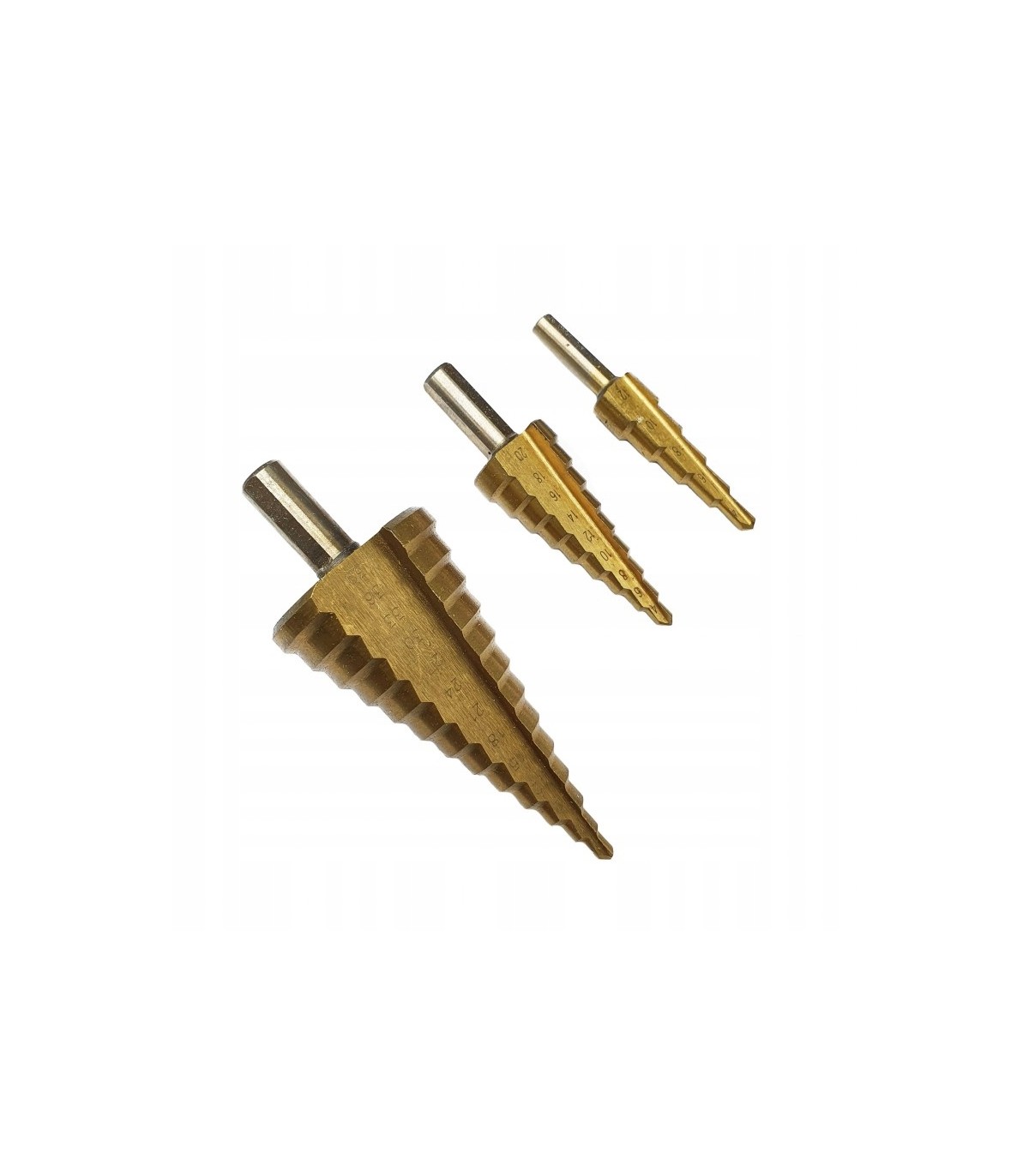 ✅Zestaw wierteł stopniowych do metalu. Zapewnia skuteczną pracę bez względu na warunki! Wiertła wykonane z wysokiej jakości stali szybkotnącej, pokrytej tytanem – dzięki temu wiertła są mocniejsze. Łatwo odprowadzają resztki, nie wymagane jest uprzednie nawiercanie powierzchni.