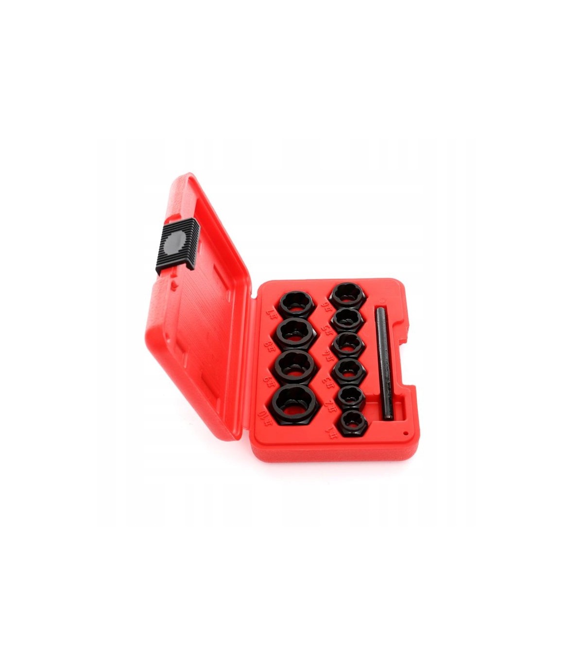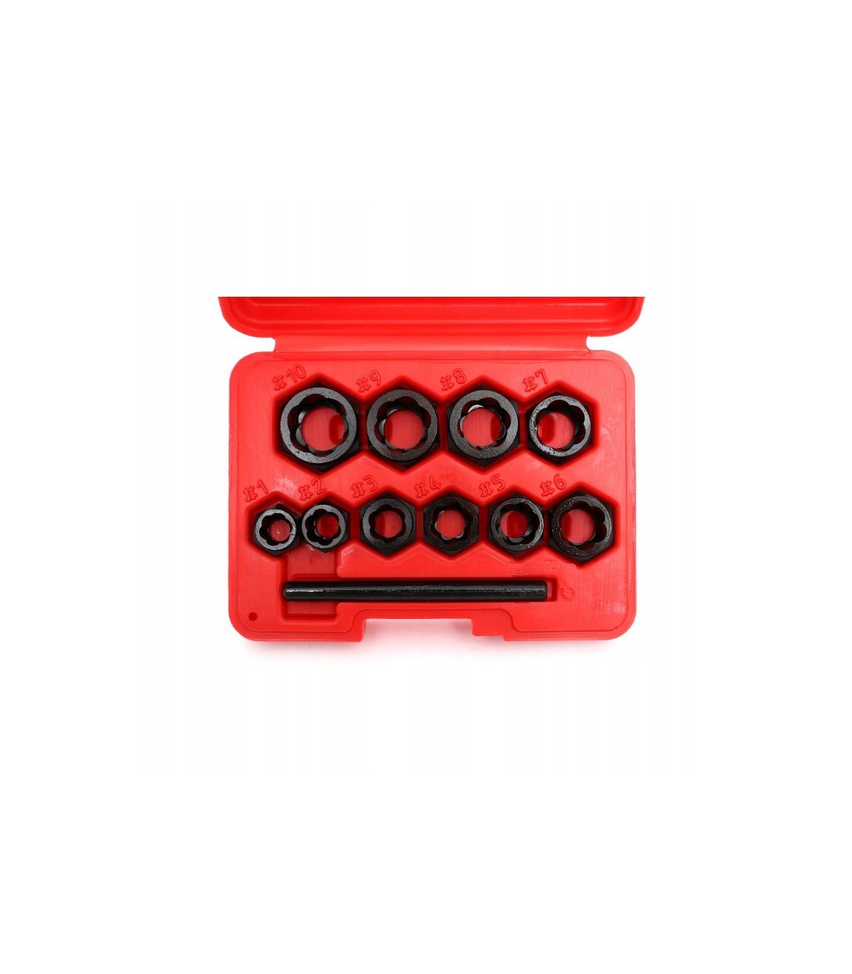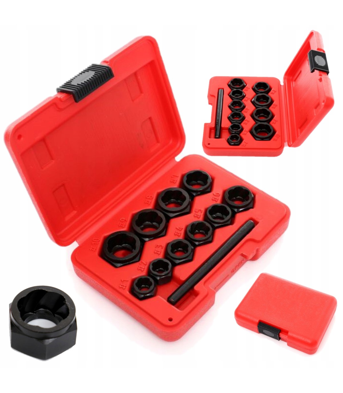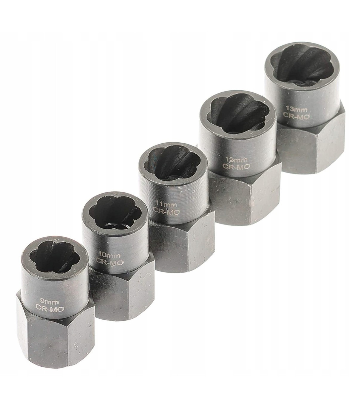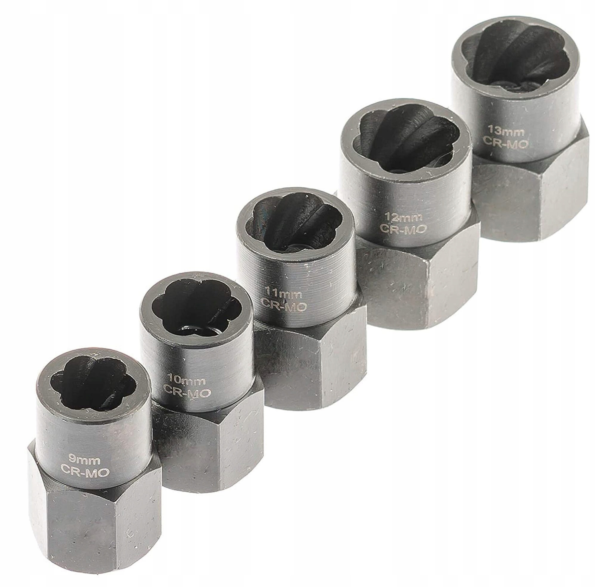 ✅ Zestaw do usuwania uszkodzonych nakrętek i śrub o rozmiarze 9 - 19 mm. Specjalny kształt nasadki ułatwiający zaklinowanie się jej na śrubie sprawia że odkręcenie uszkodzonej śruby nie będzie stanowiło problemu. Nasadki wykonano z bardzo wytrzymałej stali chromowo-molibdenowej (CR-MO), co daje im wysoką twardość oraz dużą odporność na uszkodzenia. Zestaw doskonale sprawdzi się w profesjonalnym warsztacie samochodowym, jak i w przydomowym garażu.