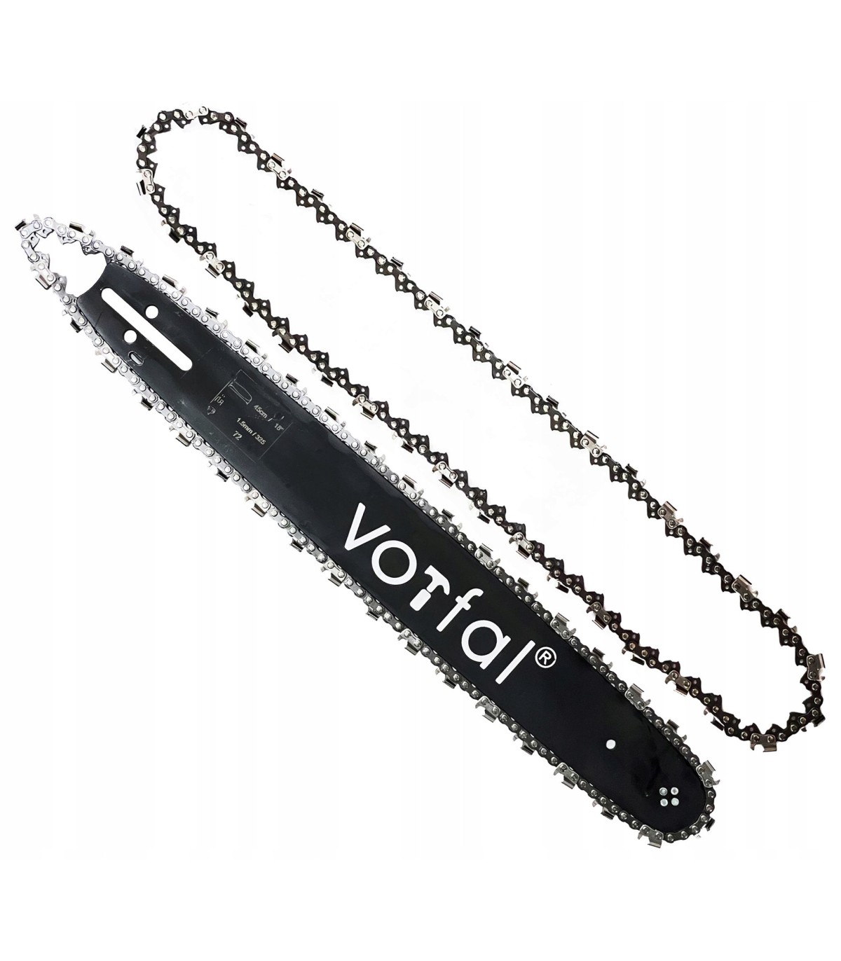 Prowadnica została wykonana z wytrzymałego materiału odpornego na ścieranie oraz temperatury występujące podczas pracy. Zestaw pasuje do pił spalinowych pracujących z łańcuchami o skoku 0,325".