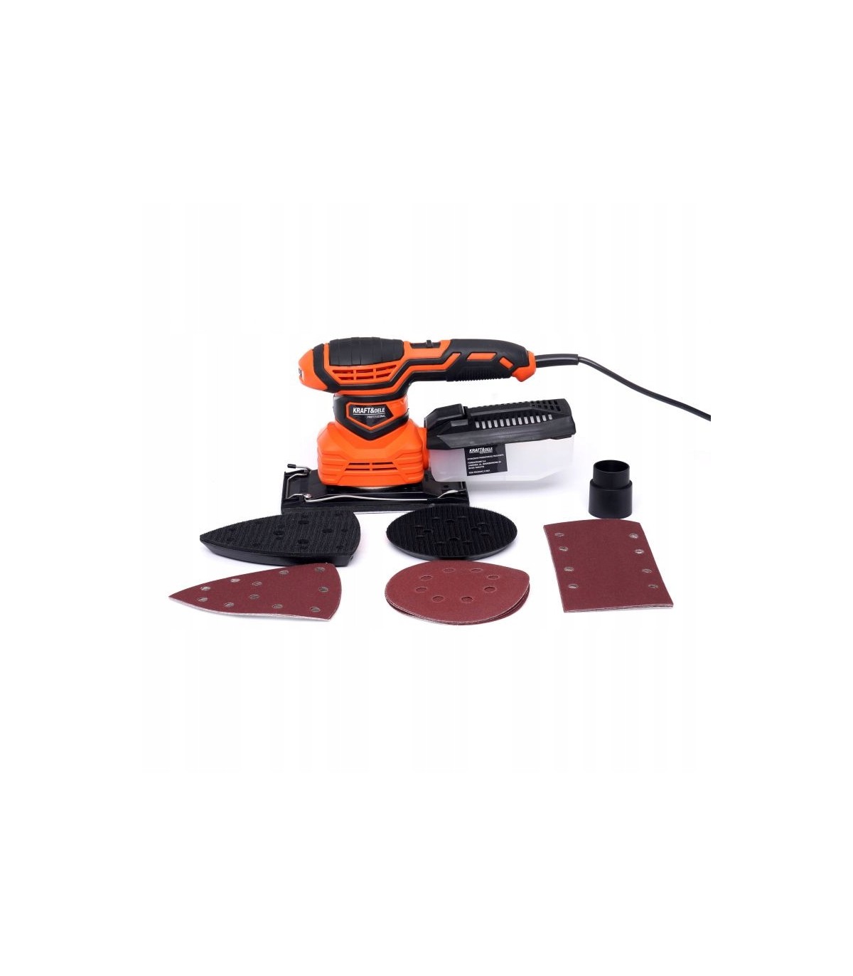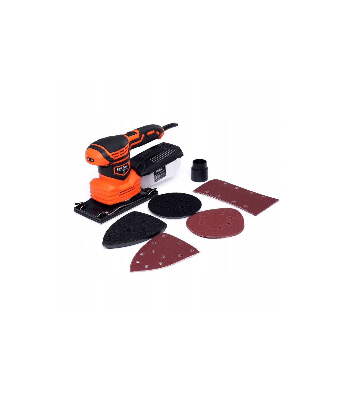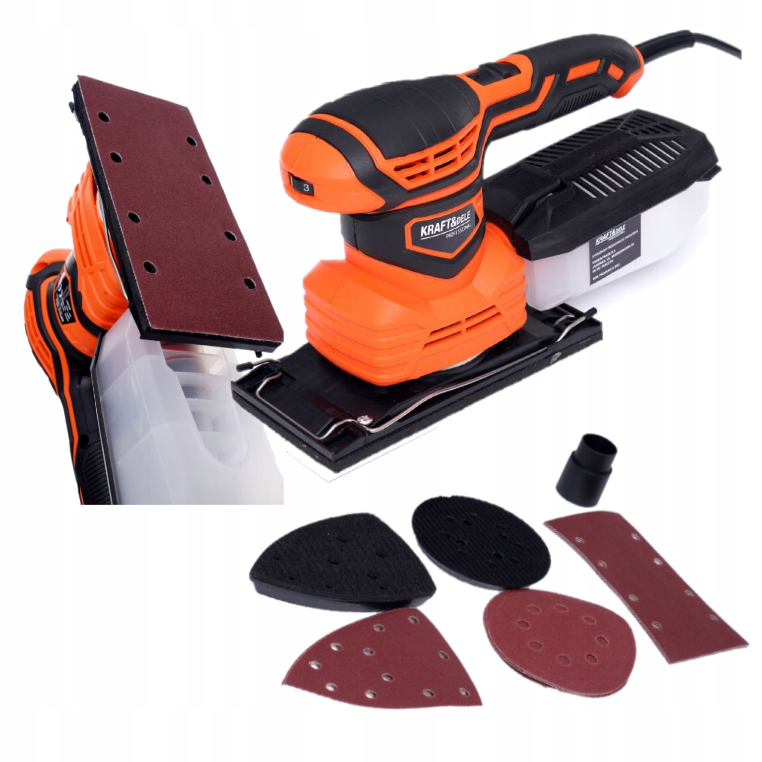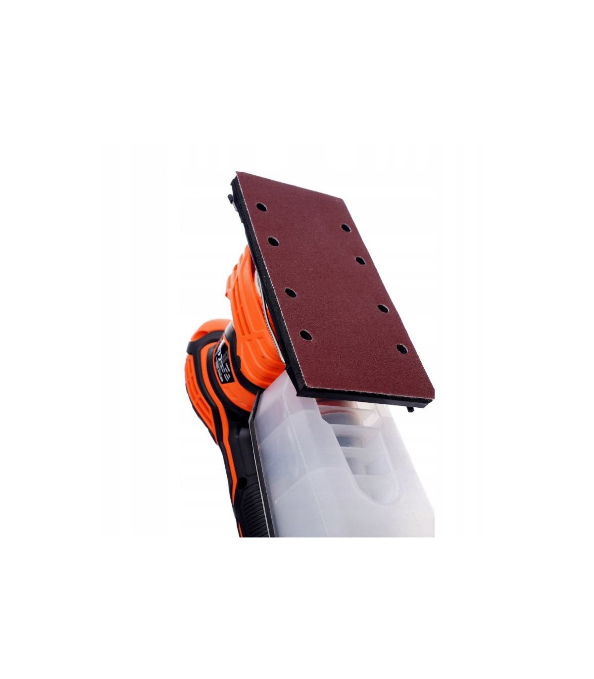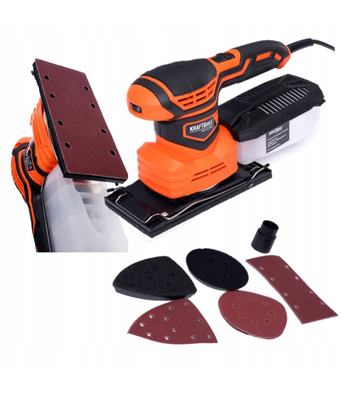 W celu szlifowania wielofunkcyjnego - mimośrodowego i oscylacyjnego szlifierka posiada możliwość zamontowania 3 różnych padów szlifierskich (Orbitalny - do szlifowania płaskich powierzchni; Trójkątny - do szlifowania powierzchni nierównych; Prostokątny - do szlifowania narożników i krawędzi).