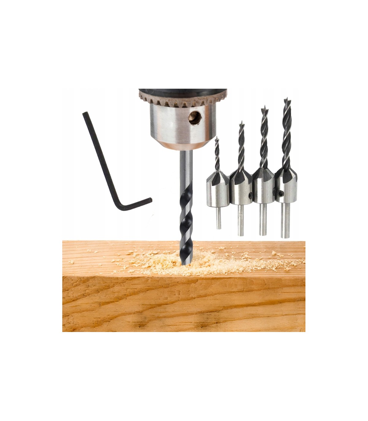 ⭐ Zestaw 4 wierteł z pogłębiaczem