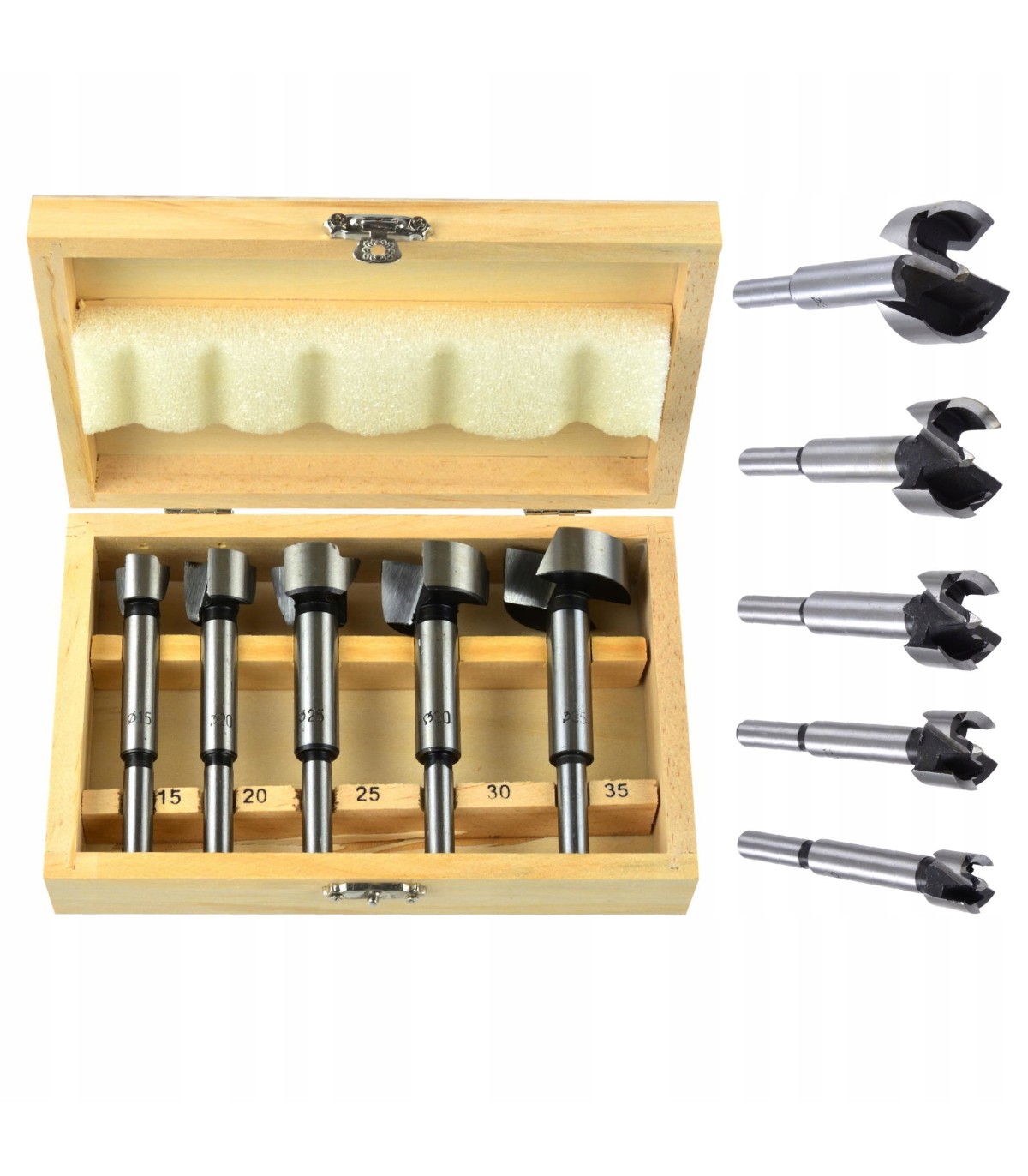⭐ FREZY SĘKOWNIKI DO DREWNA 5 SZTUK. 5-elementowy komplet frezów do drewna 15-35 mm cokowniki. Cokowniki służą do wycinania otworów w drewnie i materiałach drewno-podobnych. Świetnie sprawdzą się w warsztatach stolarskich, meblarskich oraz w przydomowym warsztacie - dla majsterkowicza.