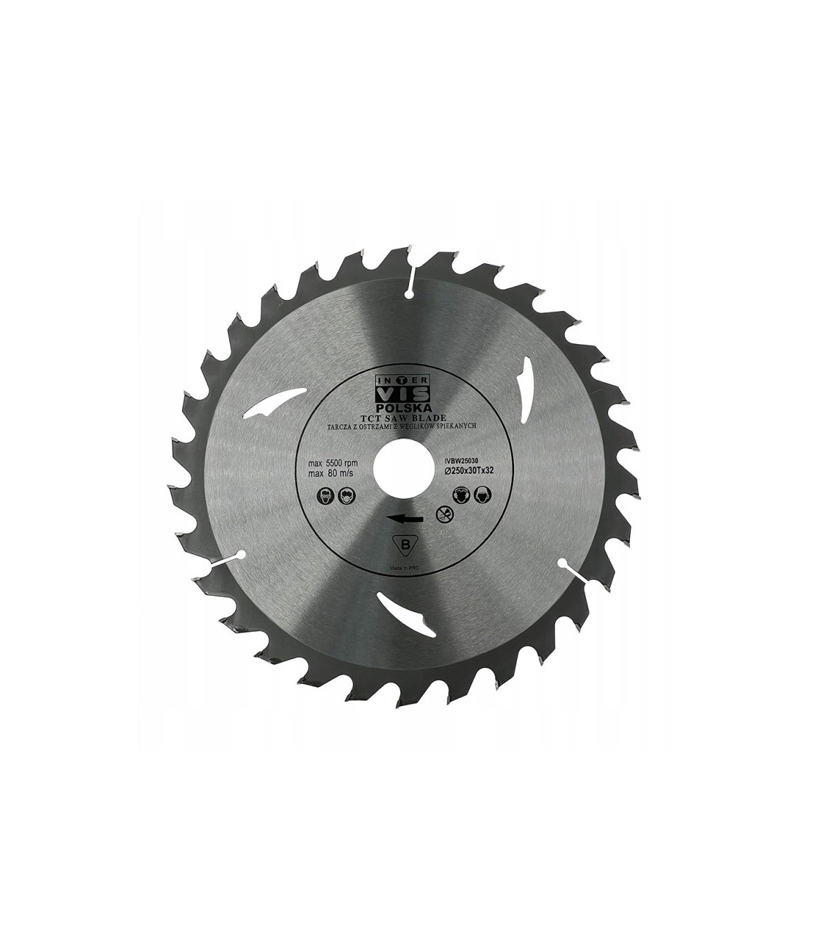 ➡️ Średnica tarczy wynosi 250 mm, a otwór mocujący to 32 mm.