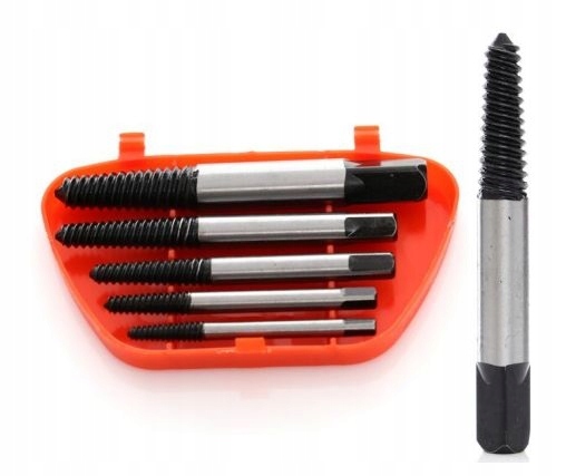 ✅ Profesjonalny zestaw 5 wykrętaków przeznaczonych do wykręcania zerwanych lub uszkodzonych w inny sposób śrub, szpilek itp stworzony z myślą o użytkownikach domowych, warsztatowych oraz zakładów pracy.