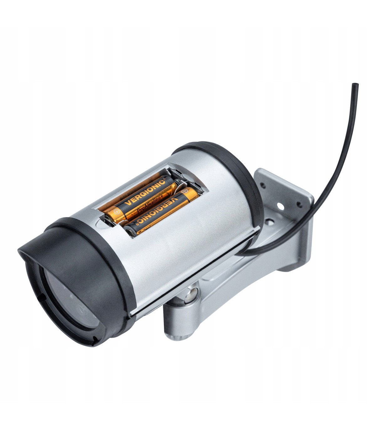 Atrapa to świetne rozwiązanie dla osób ceniących sobie bezpieczeństwo i jednocześnie oszczędność. Pozwala na ochronę bez dużego wkładu finansowego. Ze względu na swoją realistyczną budowę i kształt, ciężko odróżnić ją od prawdziwej kamery rejestrującej obraz. Wyposażona w migającą czerwoną diodę, dodatkowo potwierdza swoją wiarygodność. Nadaje się do montażu na zewnątrz, jak i wewnątrz domu, warsztatu czy magazynu. W zestawie kołki do zamontowania kamery oraz naklejka ostrzegawcza o monitoringu. Zasilana łatwo dostępnymi bateriami AA. Atrapa kamery charakteryzuje się: