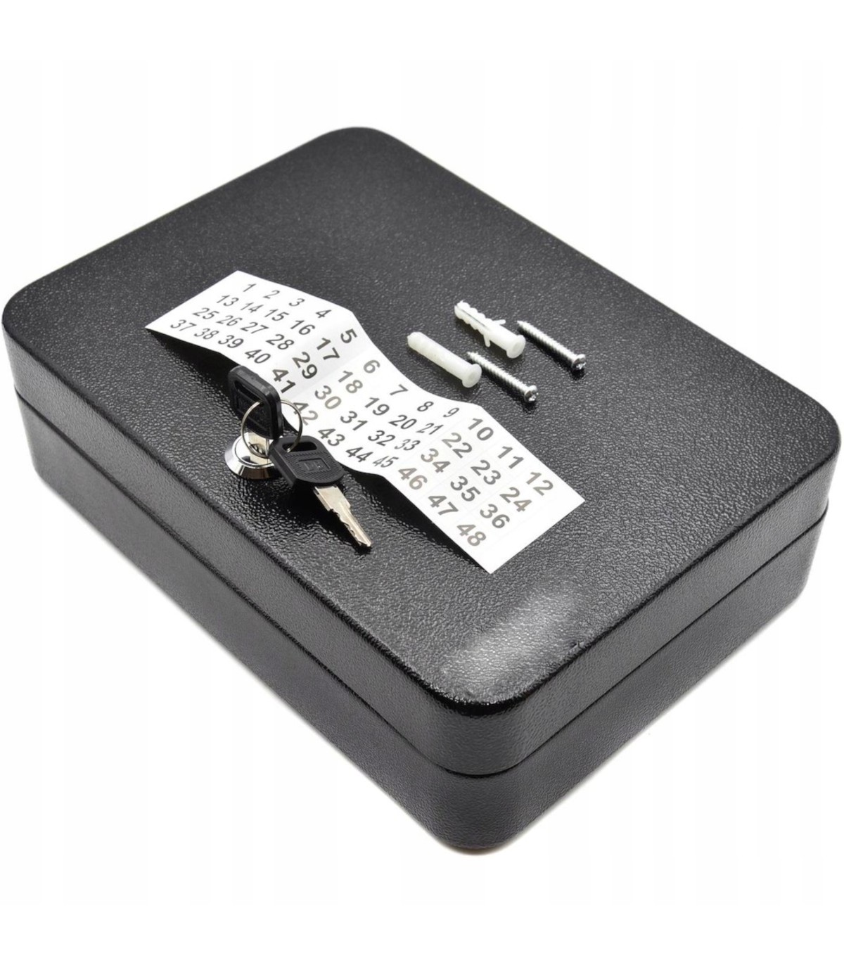 ⭐ Praktyczna i solidna skrzynka na klucze, idealna do biura, warsztatu, hotelu, szkoły, firmy czy domu. Umożliwia przechowywanie aż 48 kluczy – każdy na osobnym haczyku, rozmieszczonym w 8 rzędach po 6 sztuk.