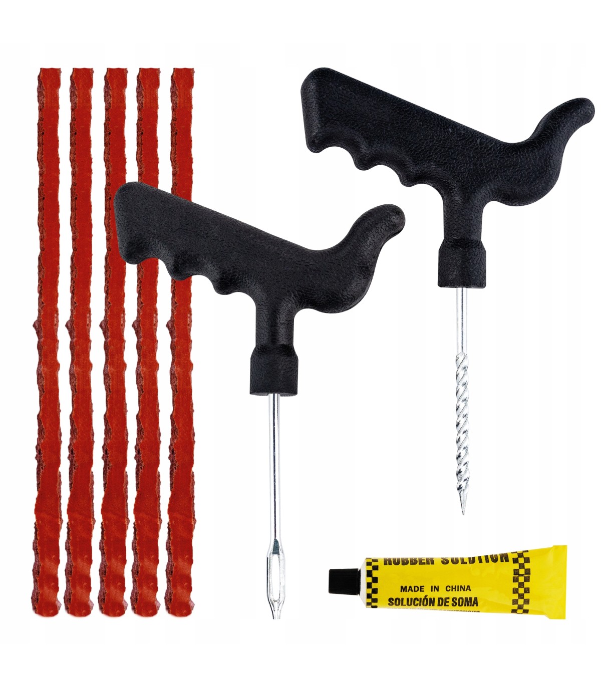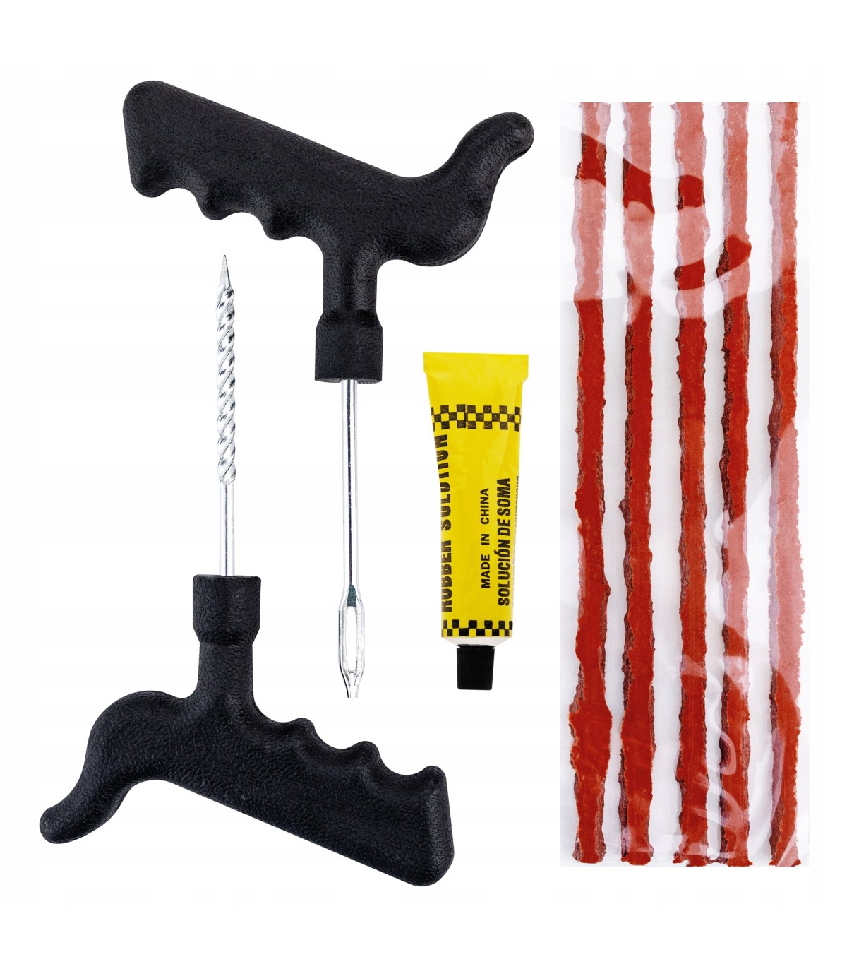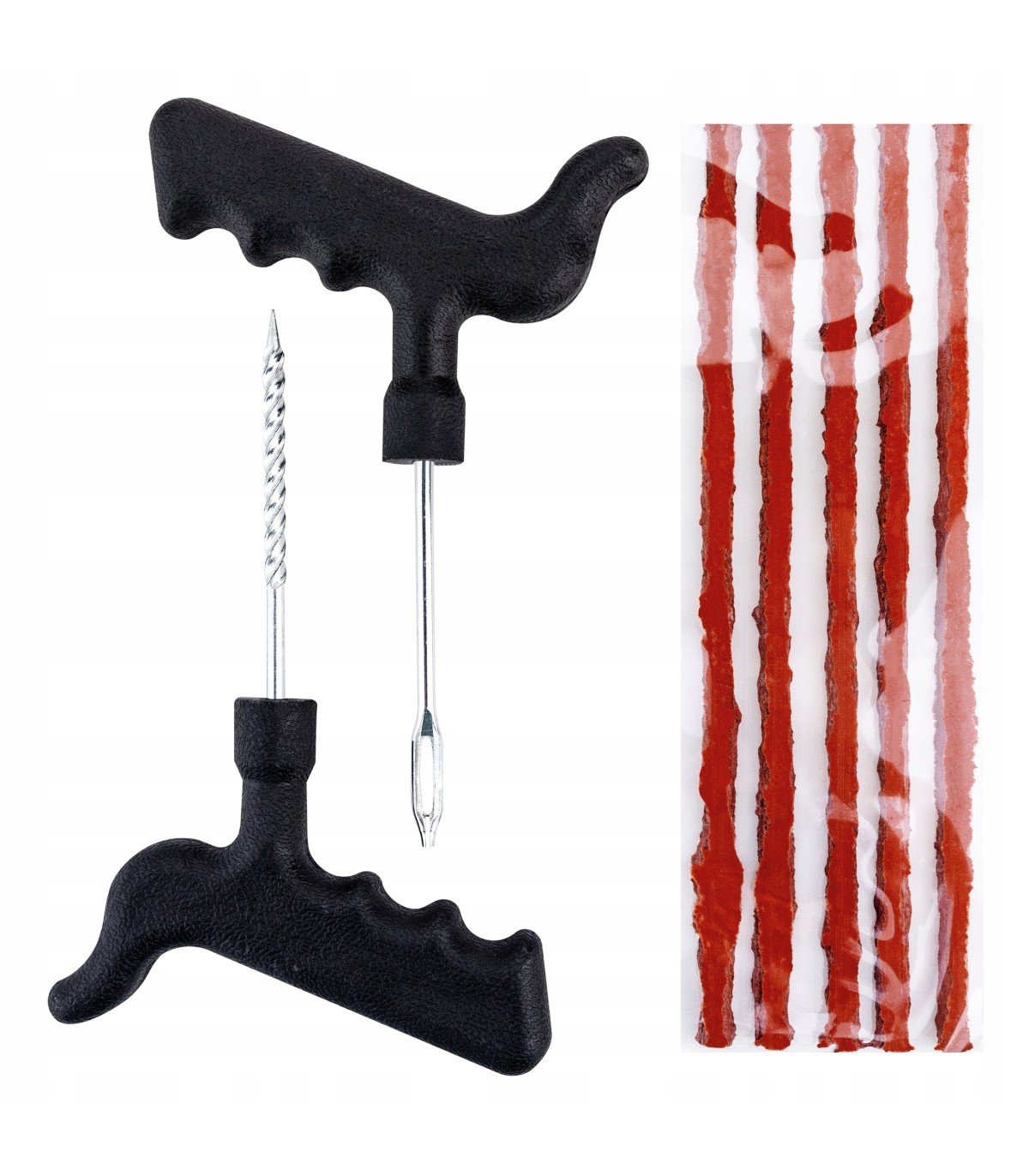 ✅ Dzięki niemu możliwa jest szybka i skuteczna naprawa przebitej opony bez konieczności jej wymiany. Jest prosty w obsłudze, a jednocześnie bardzo skuteczny. Zestaw jest przydatny w przypadku niewielkich uszkodzeń opony, takich jak np. przebicia spowodowane gwoździem czy śrubą. Zestaw składa się z 10 sznurów, kleju do uszczelniania oraz narzędzi umożliwiających bezpieczną i łatwą obsługę – frezu i szydła. Sznury wykonane są z wysokiej jakości materiałów, które zapewniają ich wytrzymałość i odporność na warunki atmosferyczne. Dodatkowo pokryte dodatkowym aktywatorem, który przyspiesza proces łączenia się z oponą. Klej w kontakcie z powietrzem zaczyna twardnieć, tworząc szczelną powłokę w miejscu uszkodzenia. W zestawie: