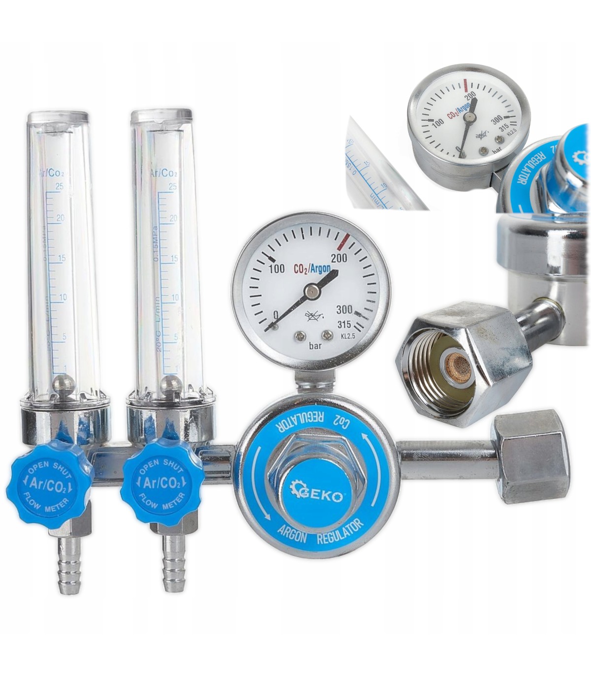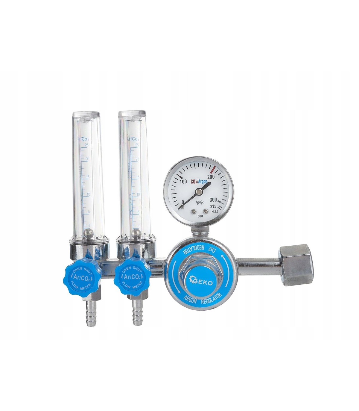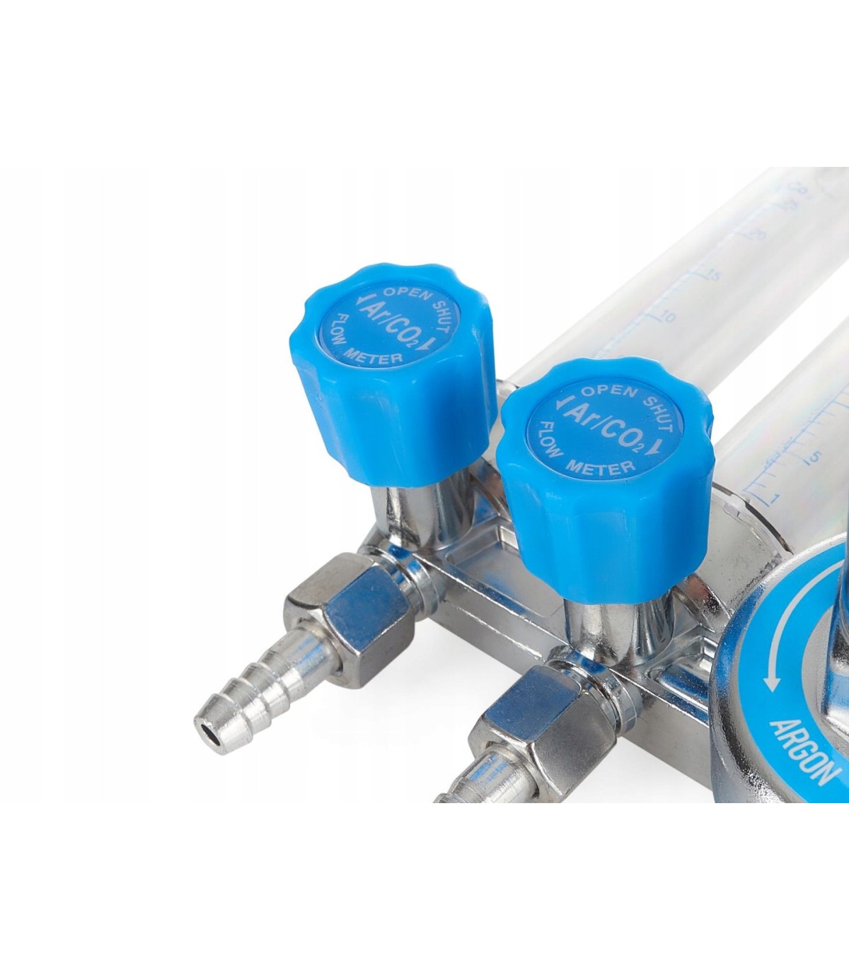 Wysokiej klasy reduktor stosowany w spawalnictwie oraz akwarystyce. Dzięki podwójnemu rotametrowi można precyzyjnie kontrolować przepływ gazu, np. przy spawaniu metodą TIG rur, gdzie dozowana jest ilość gazu do wnętrza rury i na osłonę drutu.