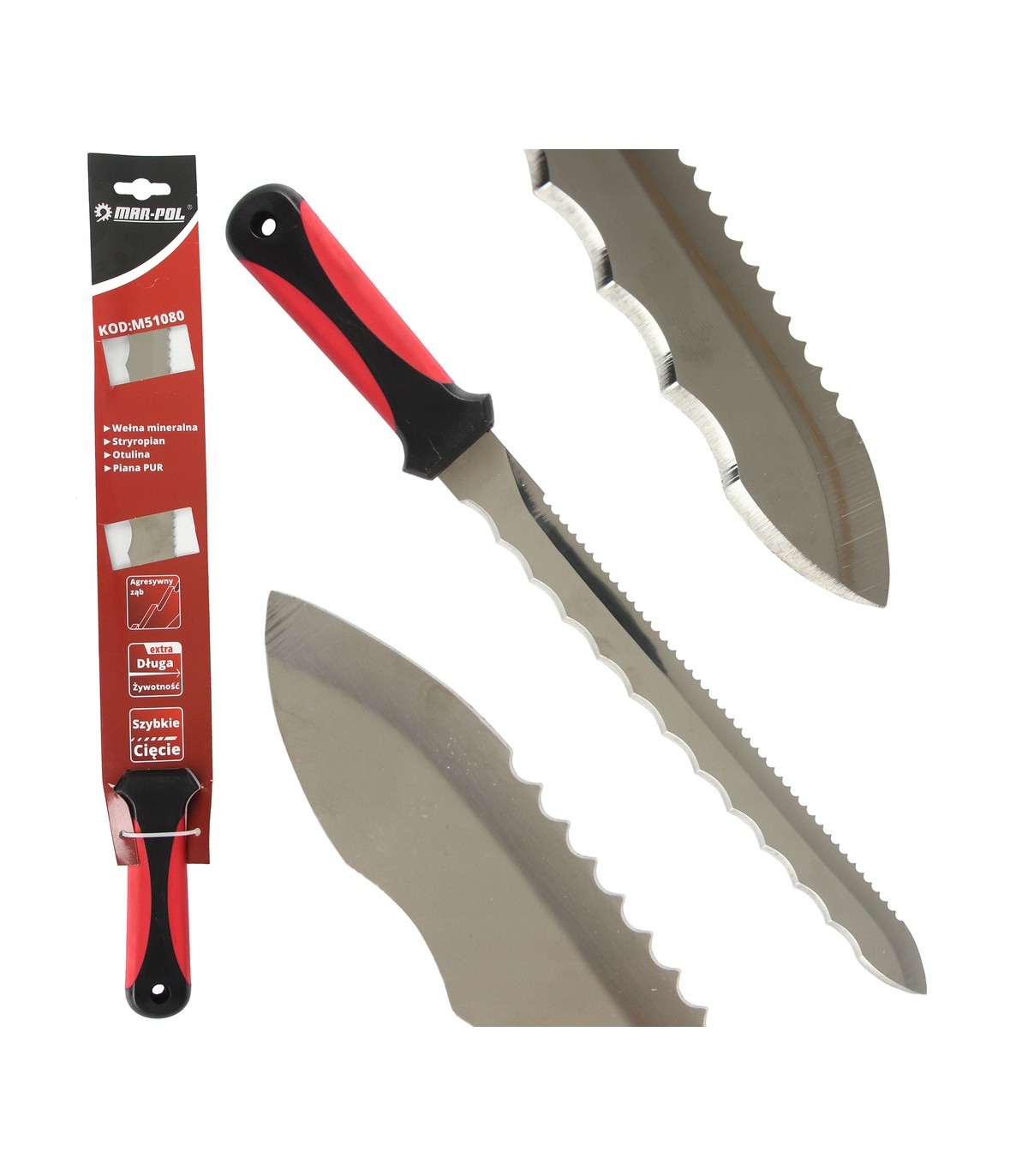 ✅ Nóż do styropianu przydaje się w wielu sytuacjach remontowo-budowlanych. Za jego pomocą bez problemu dotniesz styropian do odpowiedniego kształtu, przytniesz wełnę mineralną, a także odetniesz nadmiar zastygłej pianki izolacyjnej. Wykonane cięcie będzie przy tym wyjątkowo estetyczne i precyzyjne. Produkt został wyposażony w trwałą, profilowaną rękojeść, dzięki czemu produkt jest wyjątkowo wygodny w użytkowaniu. Tworzywo sztuczne o antypoślizgowych właściwościach to gwarancja pewnego chwytu, dlatego nie ma obaw o przypadkowe wyślizgnięcie się noża z dłoni. To ważne, szczególnie podczas pracy na wysokości. Podczas cięcia materiału należy zachować szczególną ostrożność. Produkt jest bardzo ostry i kontakt ze skórą może doprowadzić do skaleczenia.