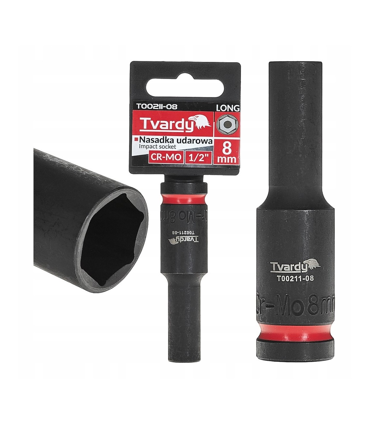 Nasadka udarowa długa 1/2" 8mm TVARDY to połączenie wytrzymałości, precyzji i niezawodności. Wykonana ze stali CR-MO, zaprojektowana do intensywnej pracy z kluczami udarowymi, gwarantuje bezproblemowe działanie nawet w najtrudniejszych warunkach.