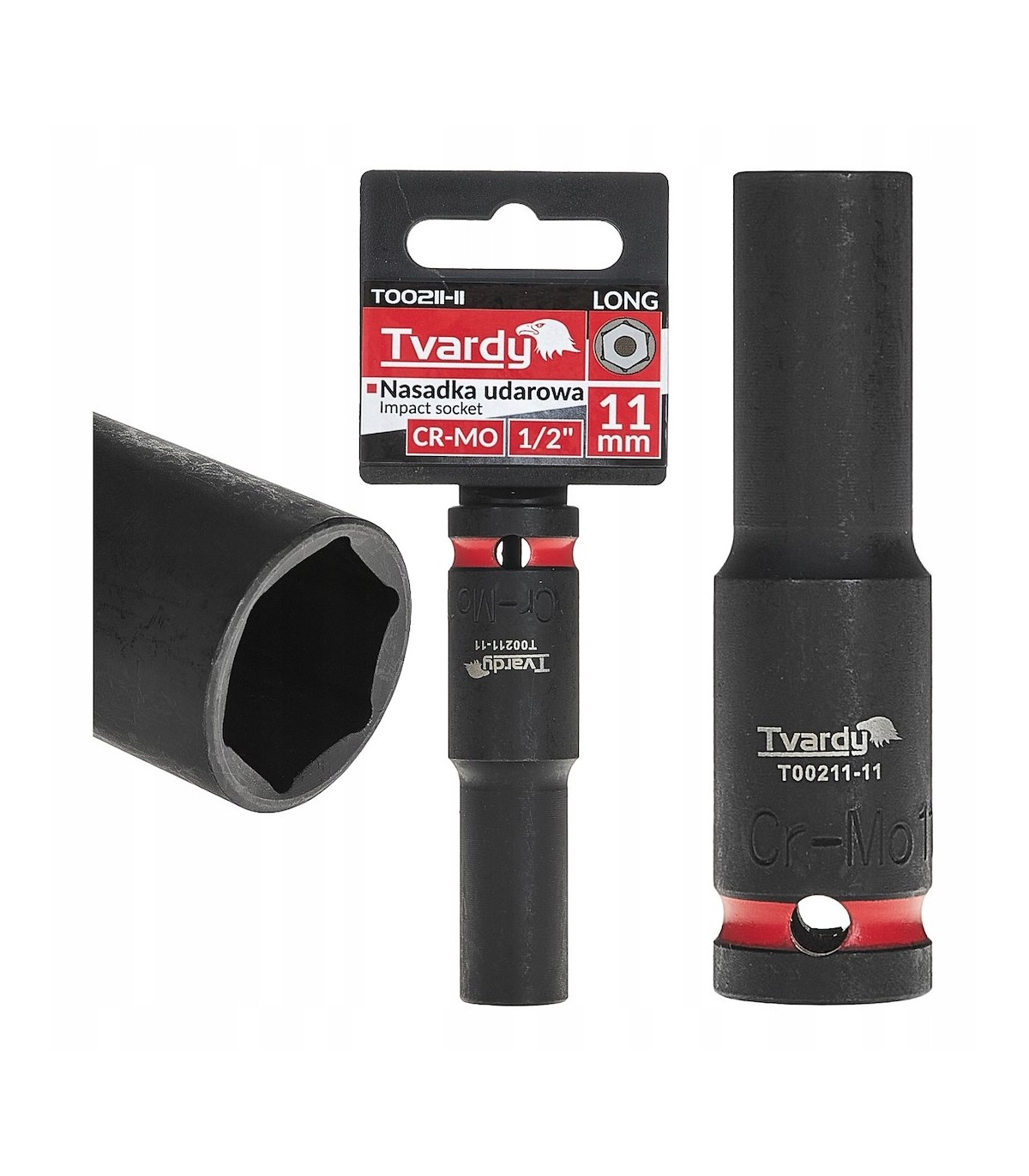 Profesjonalna długa nasadka udarowa marki Tvardy w rozmiarze 11mm, zaprojektowana do pracy z kluczami udarowymi – pneumatycznymi, elektrycznymi i akumulatorowymi.
